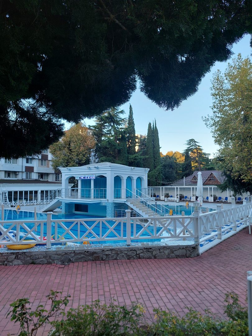 Общее впечатление очень положительное, отдыхала в отеле в межсезонье (март) поэтому загруженность отеля была небольшая, что очень радовало. На территории большая парковая зона и небольшой зоопарк, где очень комфортно погулять, посидеть в тишине на лавочках. В межсезонье работал один бассейн с подогревом и сауны (не посещала, по времени не успевала). С верхних площадок открывается красивый вид на горы, что так же очень приятно. Проживание брала с питанием (завтрак), поскольку не планировала привязываться ко времени обеда или ужина. Приятным моментом было то, что в ресторане можно взять, заплатив 500 руб, ланч боксы и положить любую еду из предлагаемой, что обеспечивает обед и ужин.