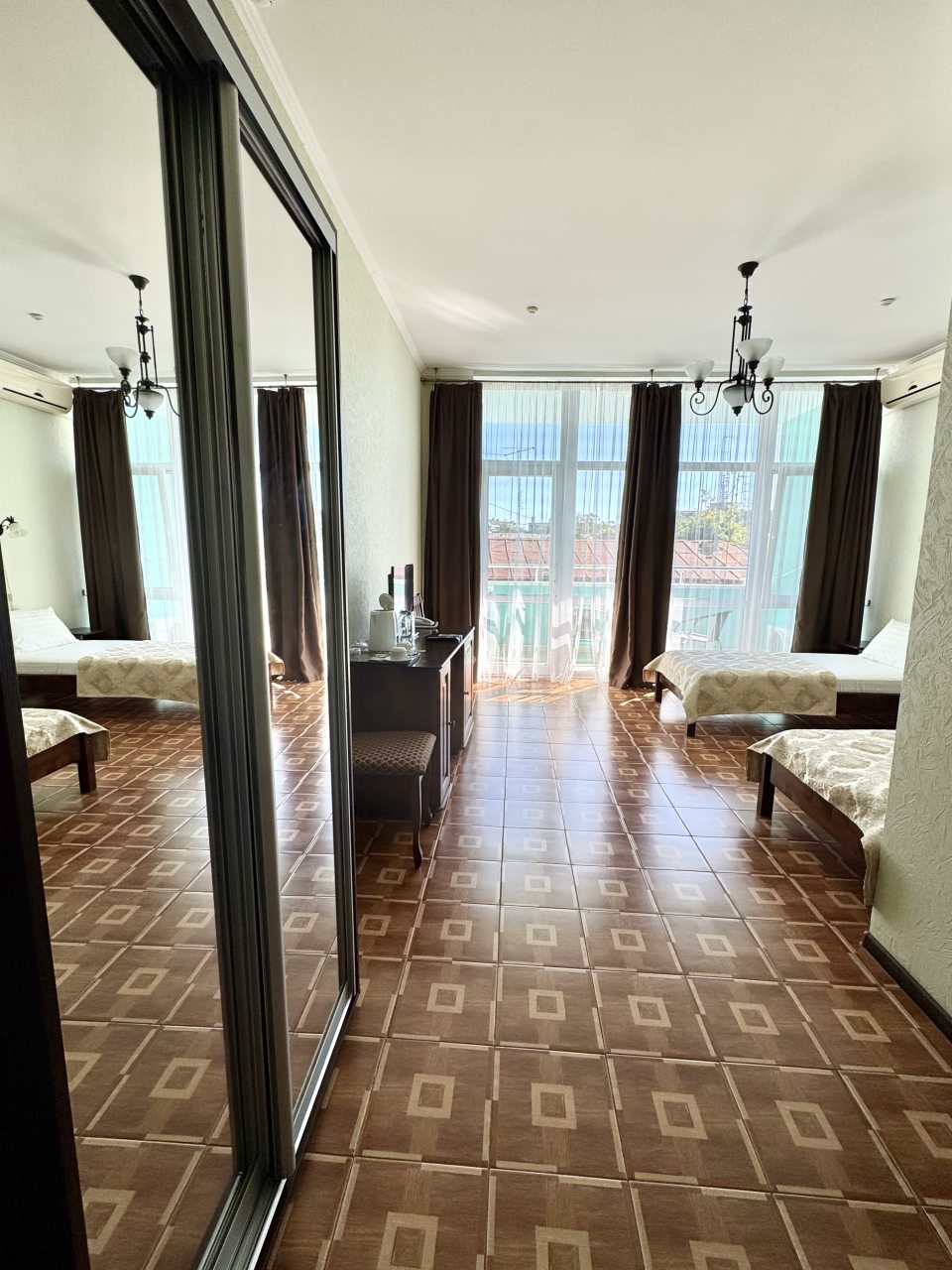 Бронировал через интернет.С 2-5.10.25 г. Вначале две звезды смутили. Но, почитал лтзывы и рискнул. В результате: местоположение, парковка и бассейн, внутри очень приятная обстановка и интерьер. Виктория нас встретила не просто приветливо, но скажем давно забытое слово - - радушно. Поселили, обьяснили... Внутри номера -5 ка. Кавролина нет, чисто, все работает из техники. Окна с балконом - пол- потолок, балкон на парк. Вид красиаый. Ночью тихо. Хотя отель находиться от набережной в 3х минутах ходьбы. Если резюмировать: удивило все. Предлагаю всем привозить по звезде с собой. В целом отель тянет на 4 звезды. И это не пустые слова. Побывали и в Испаниях и в Италиях и Иорданиях. Есть с чем сравнивать. Хозяину отдельное спасибо от офицера -за удачгый наш отдых. РЕДКОЕ СОЧИТАНИЕ ЦЕНЫ И КАЧЕСТВА.. Буду рекомендовать близким и друзьям.