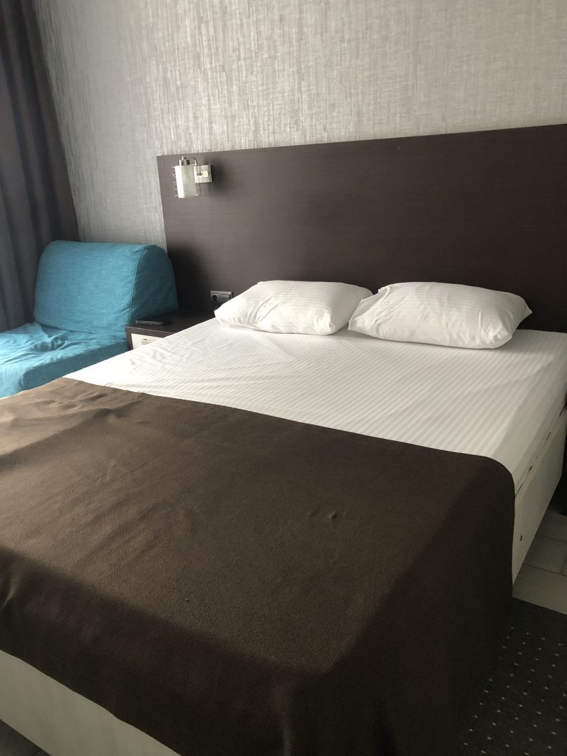 Отель порекомендую своим друзьям: он расположен в спокойном месте, в двух минутах от моря. В номере чисто, белоснежное постельное белье, белые полотенца,халаты, для пляжа - серые полотенца.Очень удобная большая кровать. Внимательные и приветливые девушки на ресепшене . Кухня домашняя, всего хватало. Мы отдыхом довольны!!!