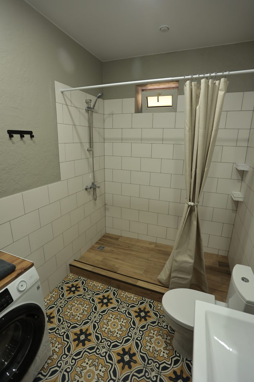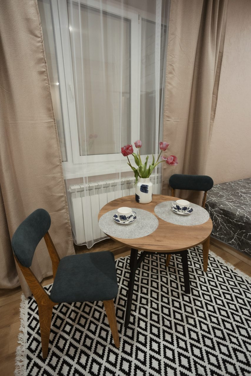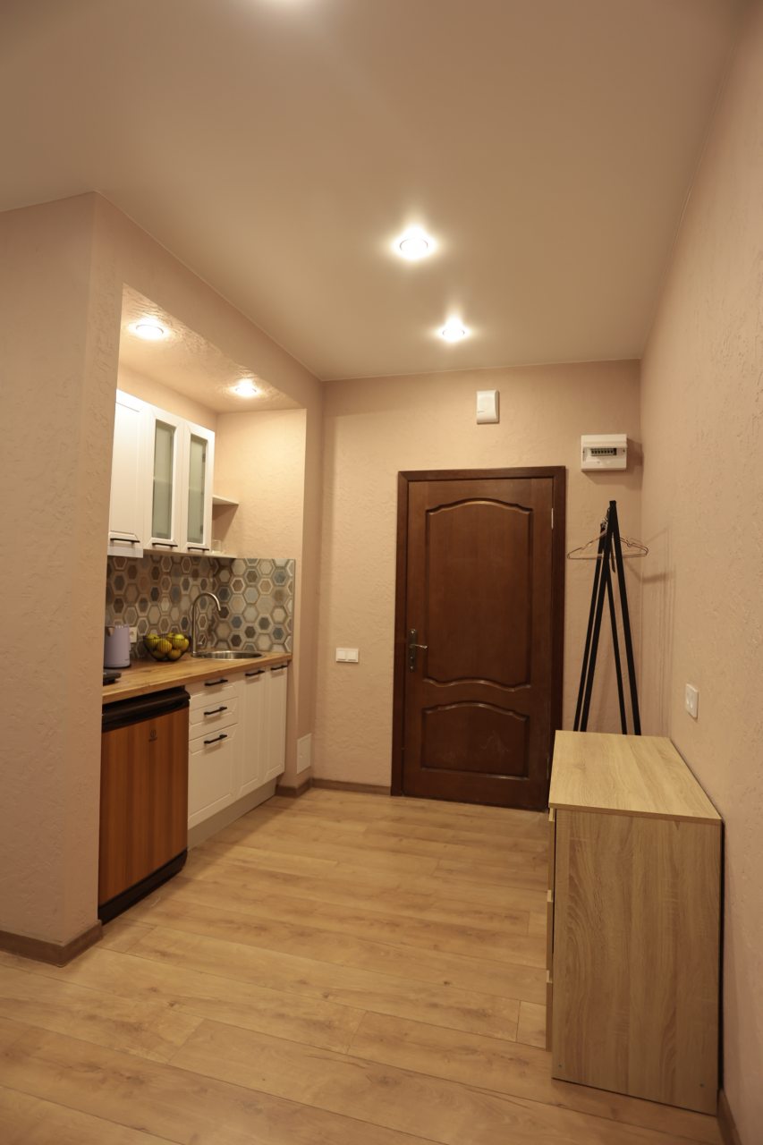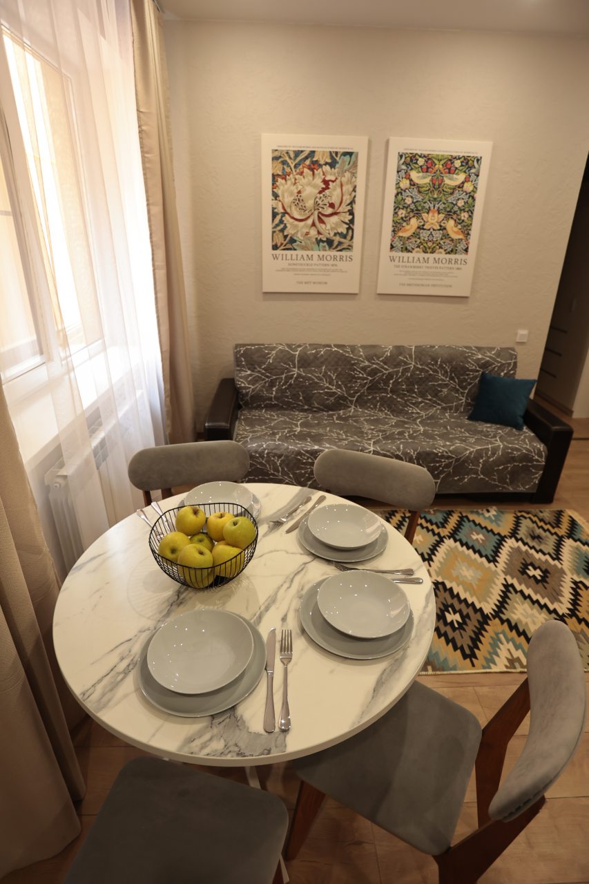 Кухонная зона оснащена гарнитуром, обеденным столом, холодильником, электроплитой, чайником и др. В шаговой доступности магазины, рестораны и кафе.