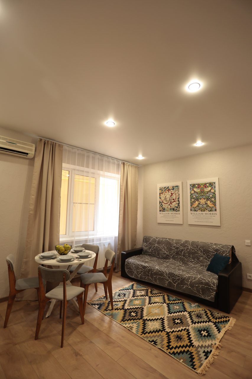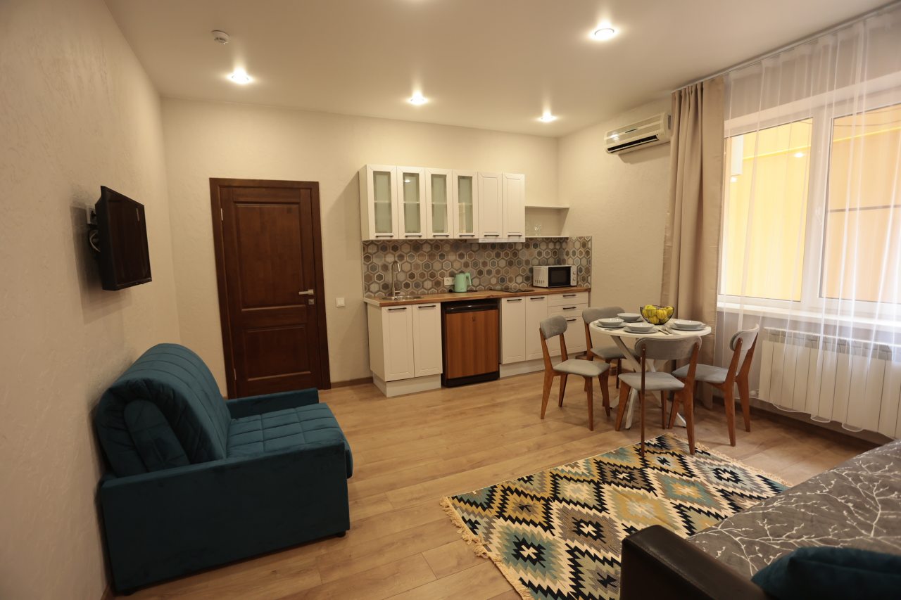 Номерной фонд состоит из 6 современных апартаментов с дизайнерским ремонтом, которые оборудованы комфортабельными спальными местами со свежим постельным бельем, прикроватной мебелью, светильниками для вечернего чтения, шкафом, кухонной зоной, телевизором и затемненными шторами для комфортного сна. Собственная ванная комната укомплектована всей необходимой сантехникой и стиральной машиной. Доступна точка WI-FI.