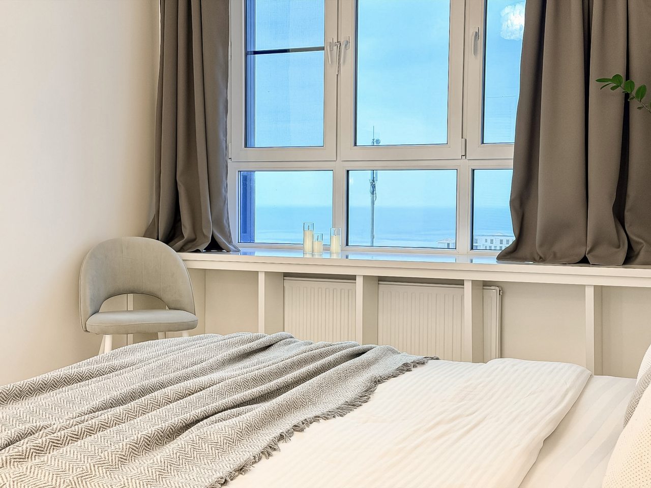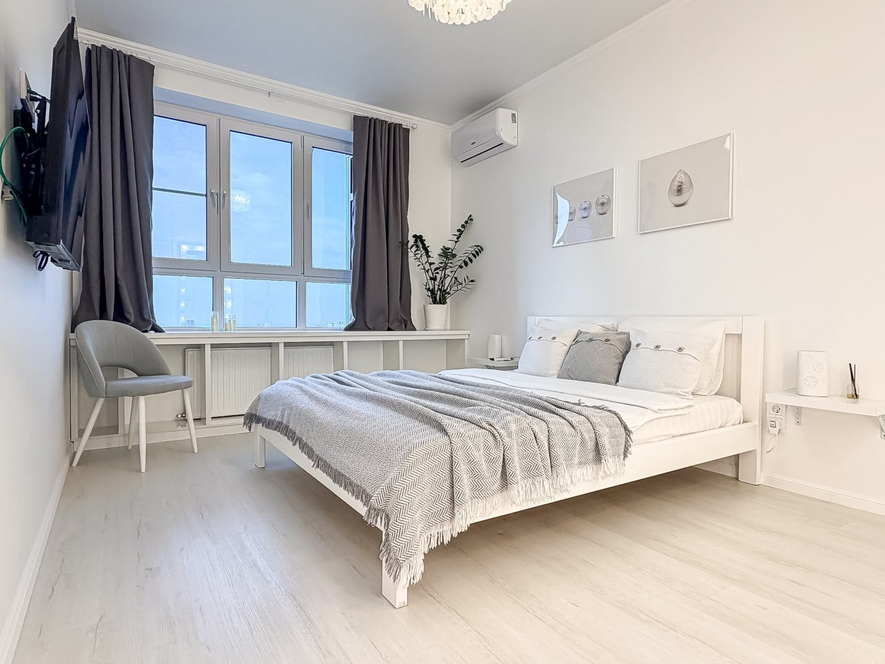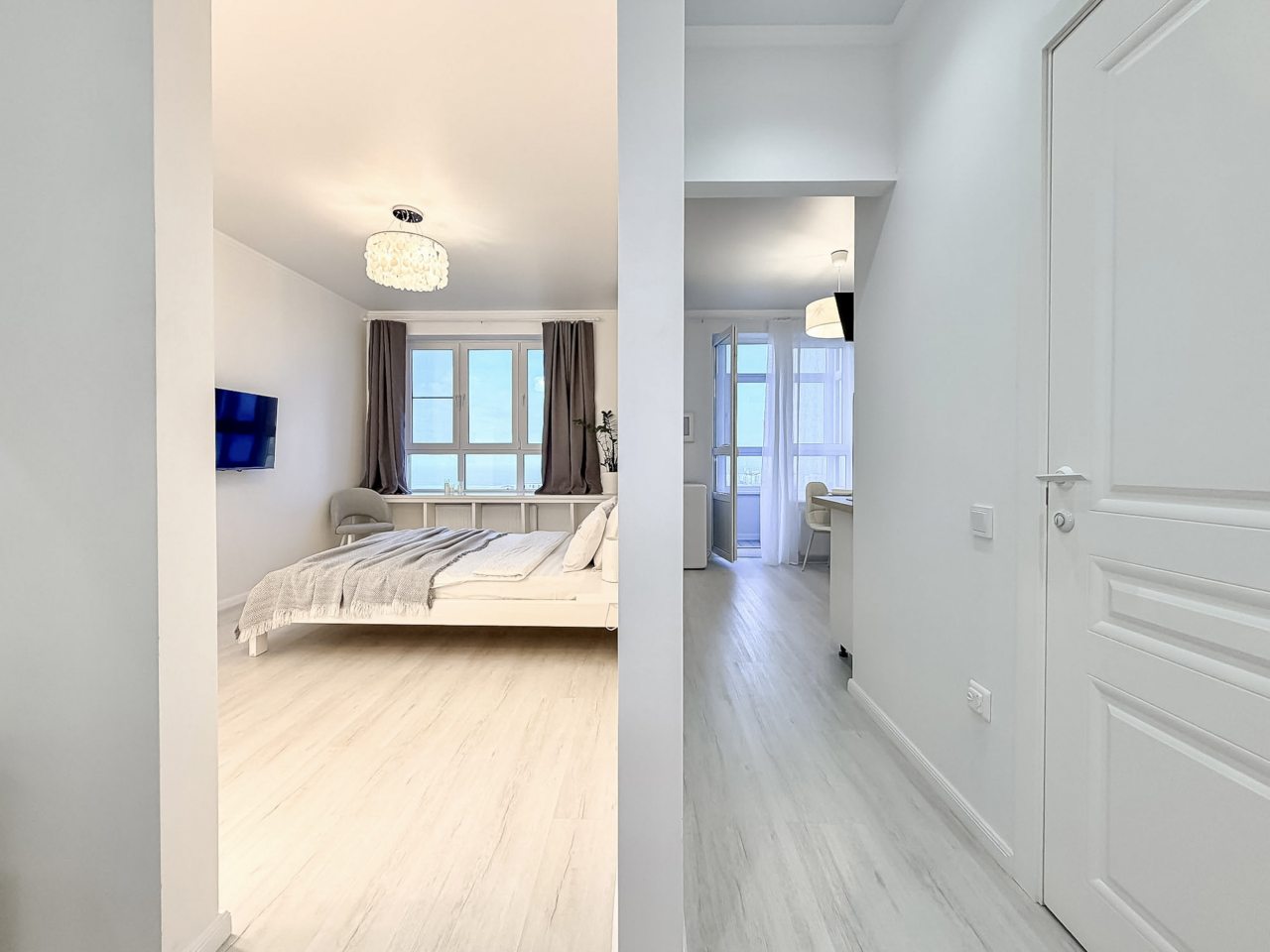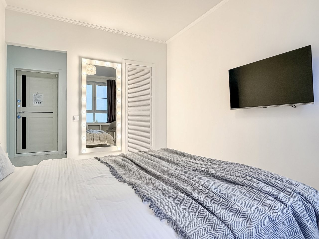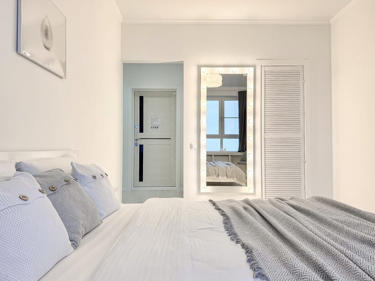 Среди удобств имеется двуспальная кровать, ЖК-телевизор, кондиционер, уютный балкон с зоной отдыха и красивым видом из окна, санузел со стиральной машиной, феном и полотенцами, гардеробная, утюг и многое другое.