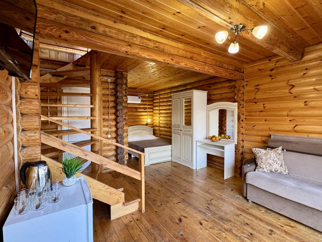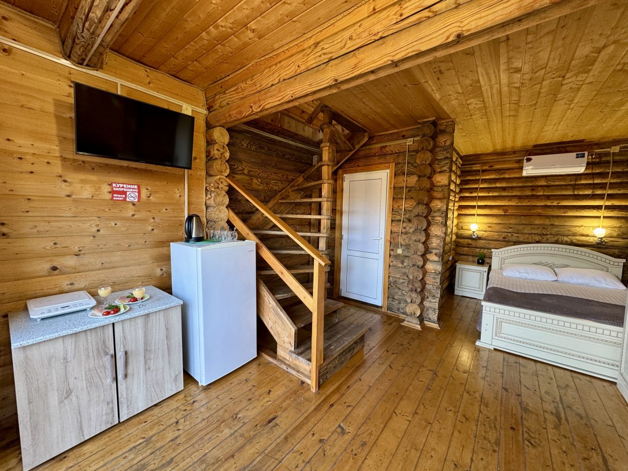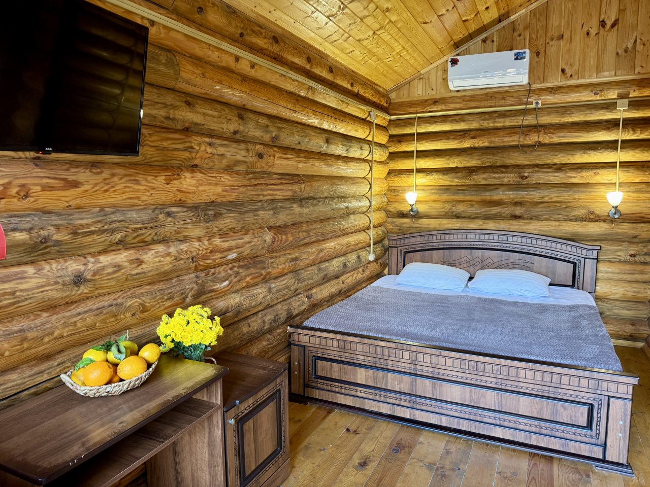 Гостям предлагается разместиться в эко-домиках разной категории и вместимости с удобной планировкой и индивидуальным дизайном. Они обустроены комфортабельными спальными местами, на которых будет приятно отдохнуть, кондиционером, собственной ванной комнатой и телевизором. В свободном доступе Wi-Fi. Также есть дома со своими террасами и балконами.