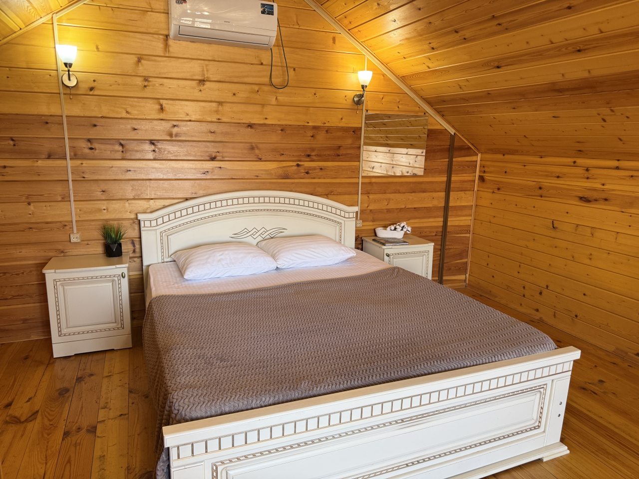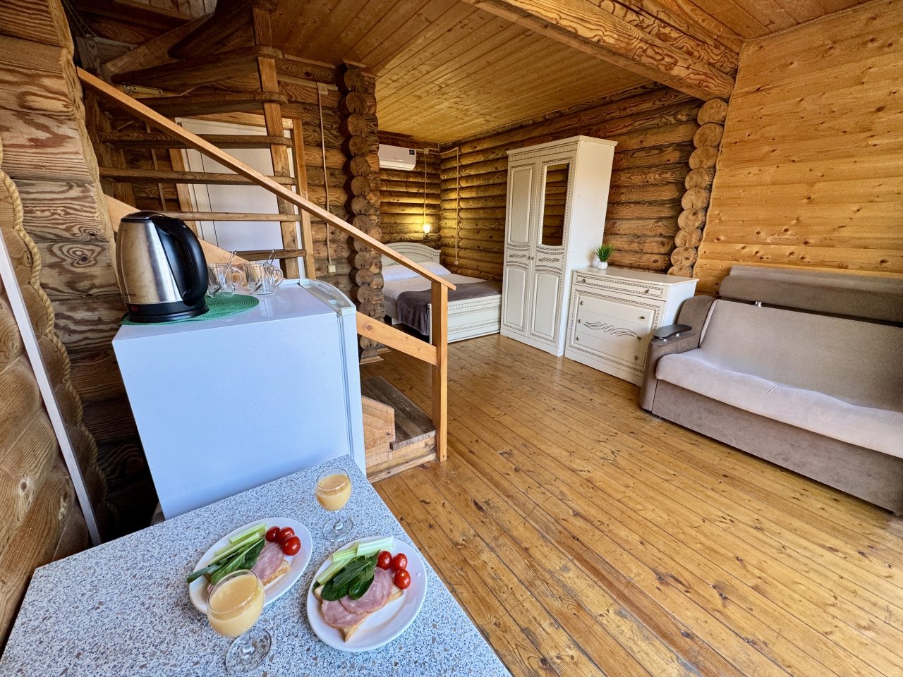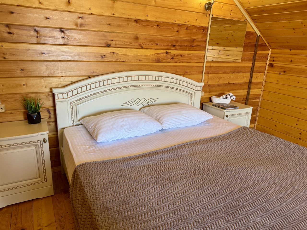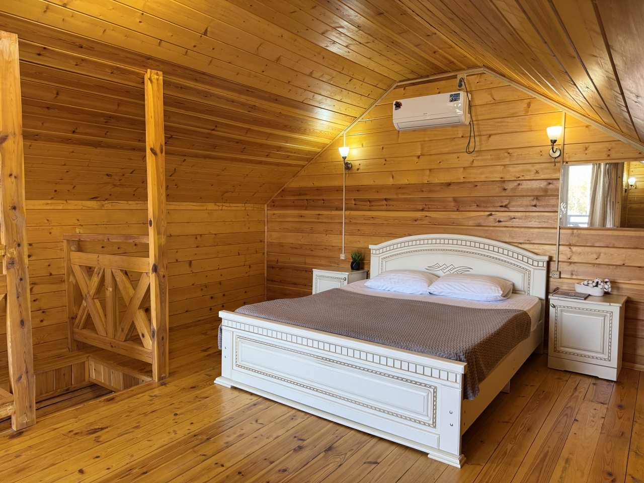 Гостям предлагается разместиться в эко-домиках разной категории и вместимости с удобной планировкой и индивидуальным дизайном. Они обустроены комфортабельными спальными местами, на которых будет приятно отдохнуть, кондиционером, собственной ванной комнатой и телевизором. В свободном доступе Wi-Fi. Также есть дома со своими террасами и балконами.