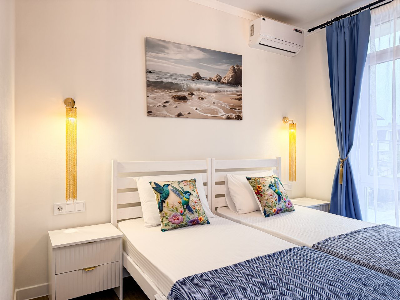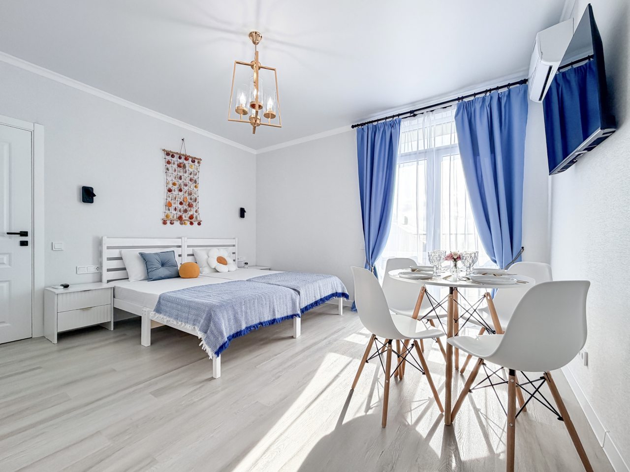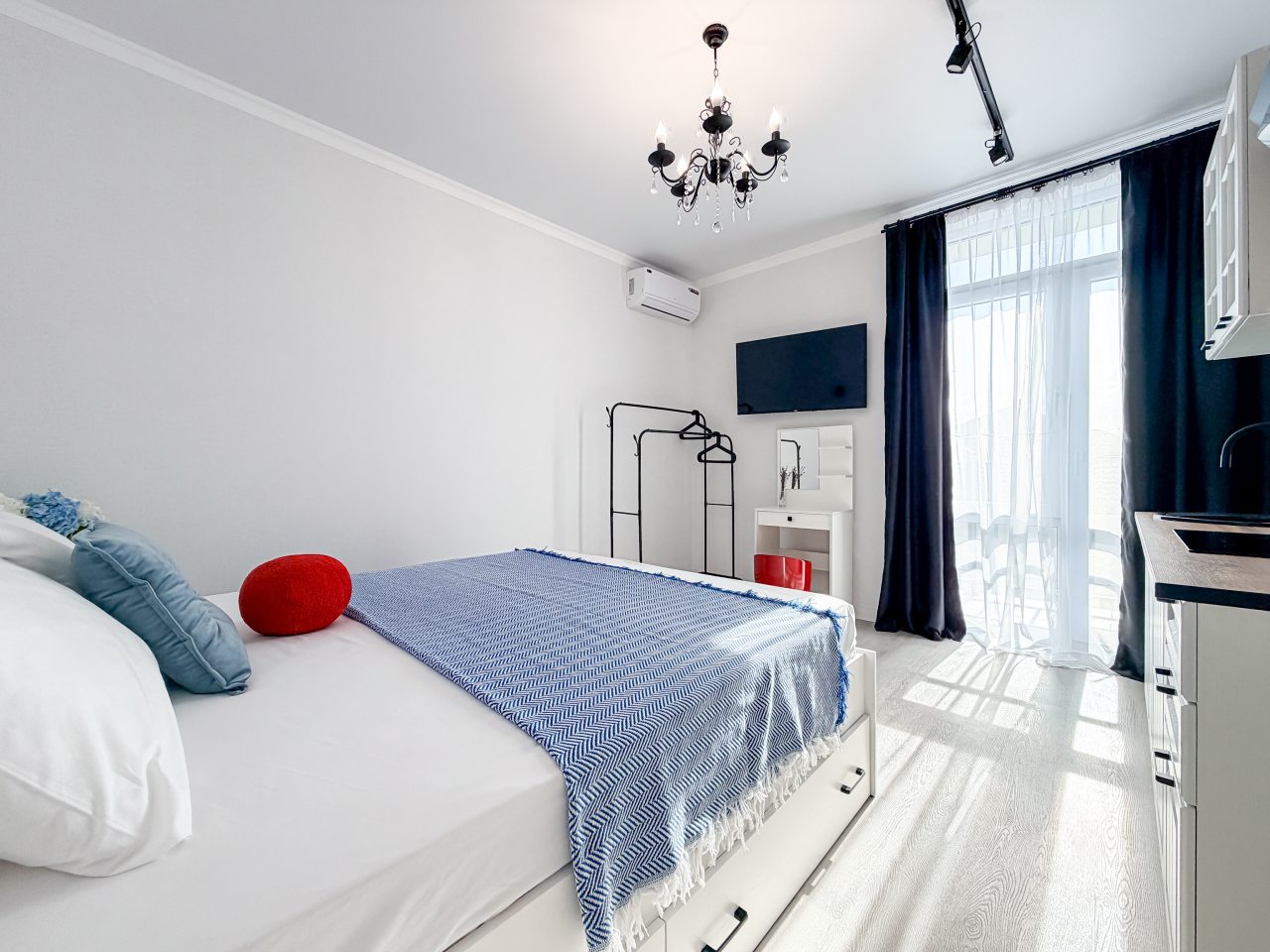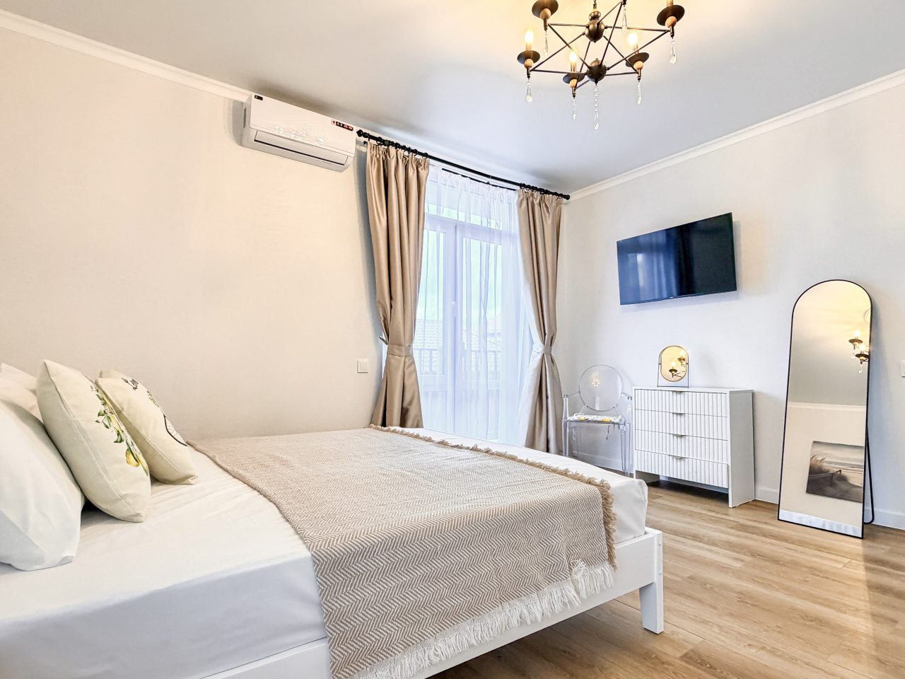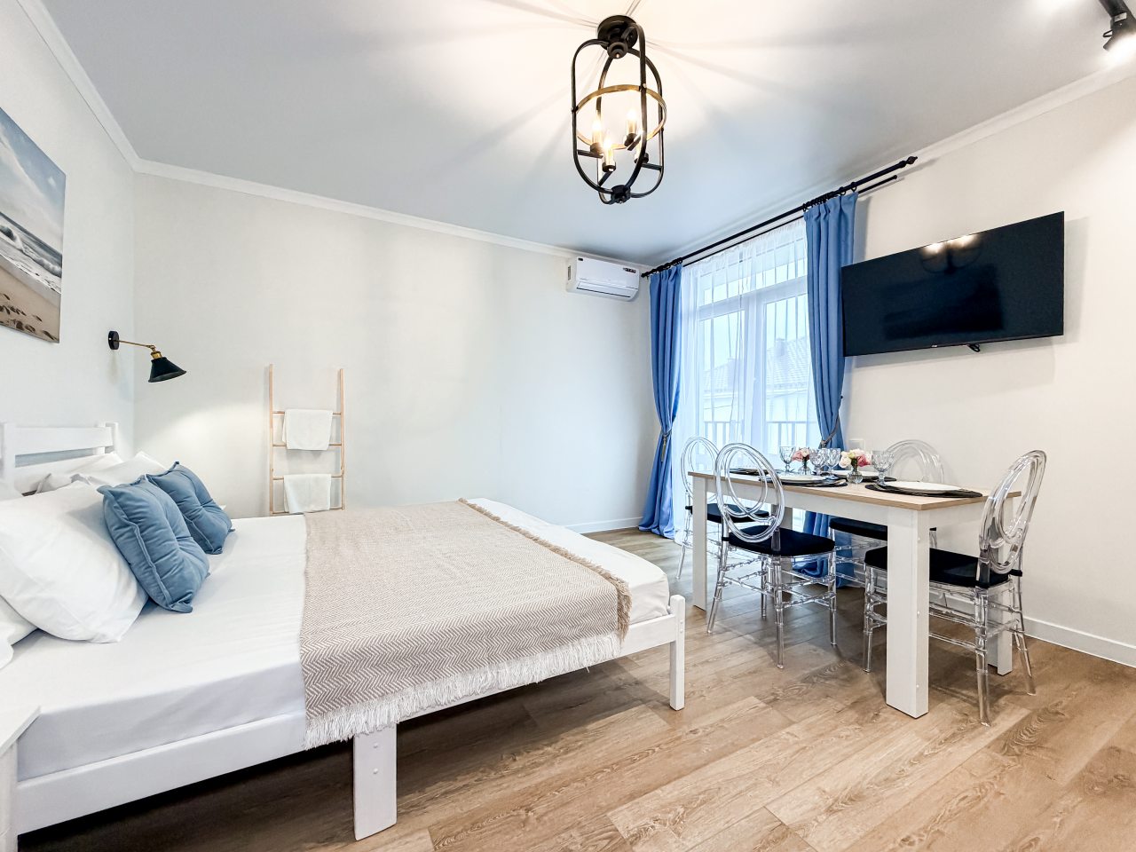 Номера оборудованы всем необходимым для полноценного отдыха, например: удобными спальными местами, кондиционером, телевизором, кухней, собственной ванной комнатой и зоной отдыха. Санузел укомплектован современной сантехникой, средствами личной гигиены, полотенцами и стиральной машиной. Качественный текстиль и декоративные детали создают атмосферу уюта.