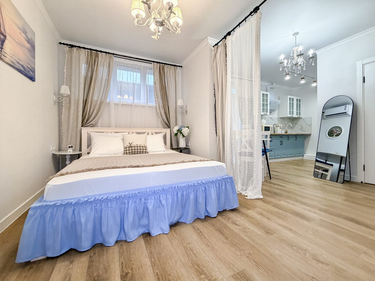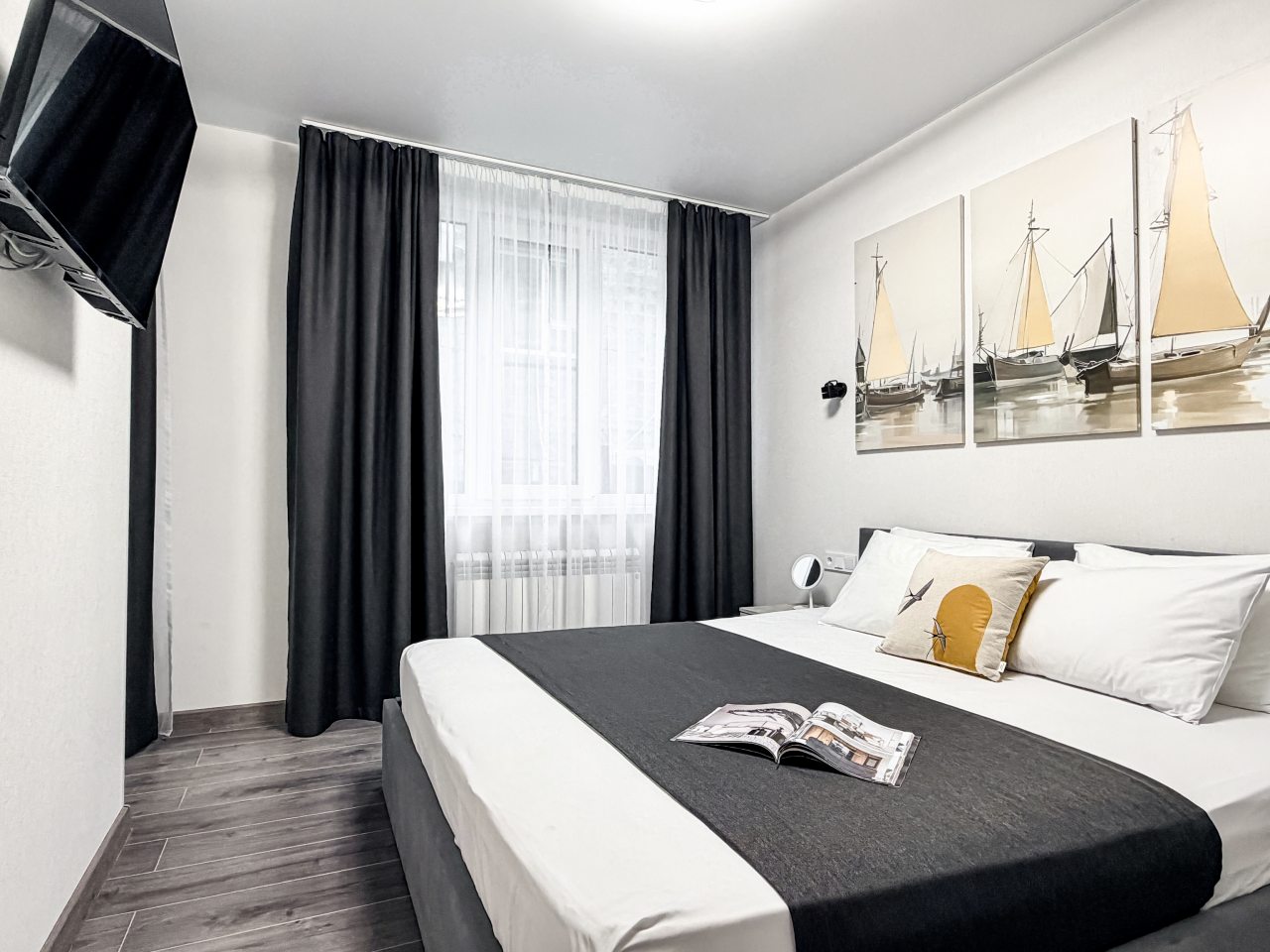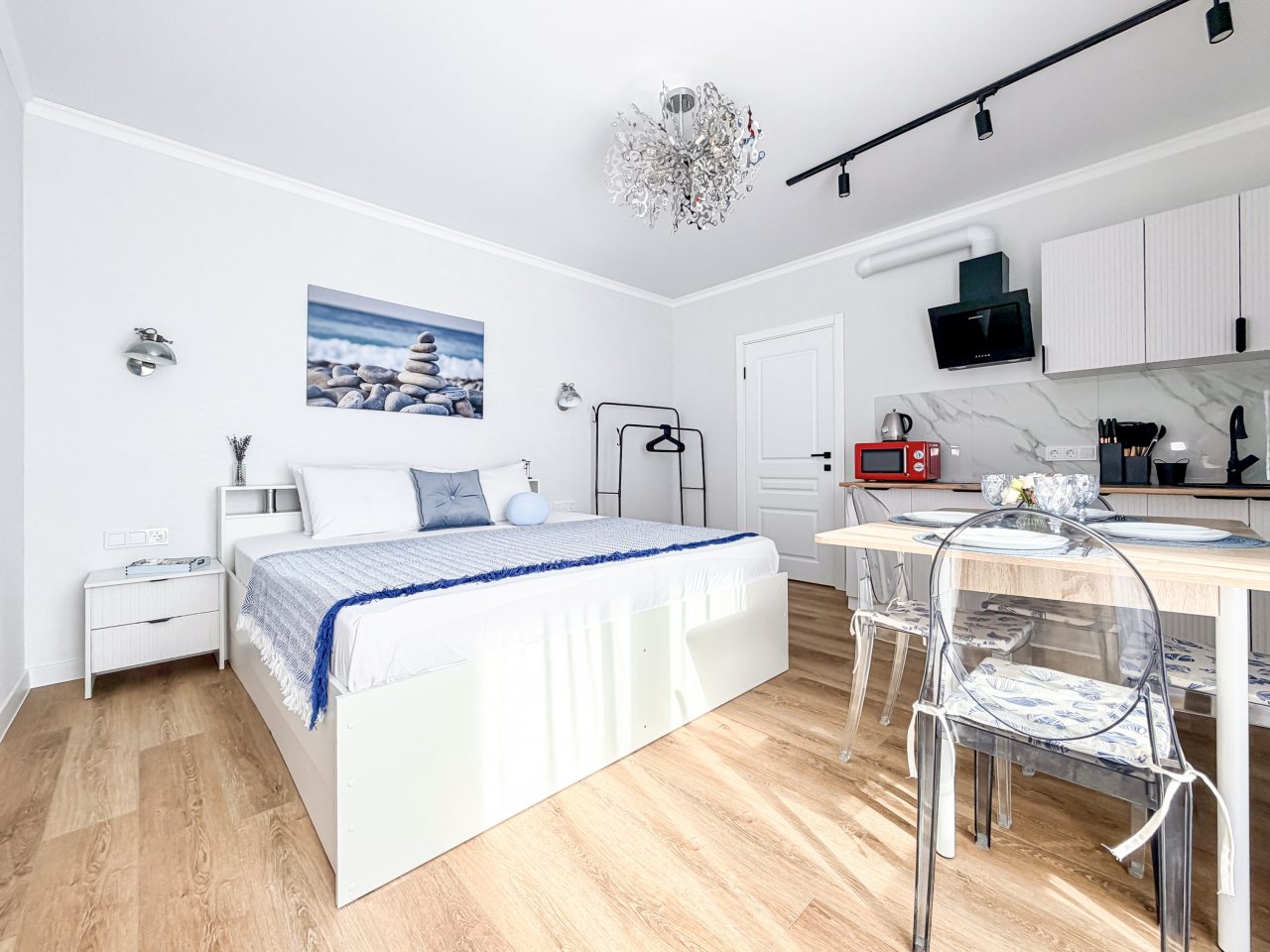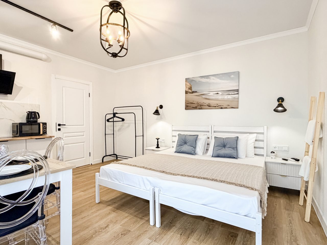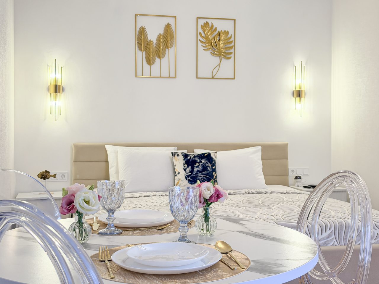 Номера оборудованы всем необходимым для полноценного отдыха, например: удобными спальными местами, кондиционером, телевизором, кухней, собственной ванной комнатой и зоной отдыха. Санузел укомплектован современной сантехникой, средствами личной гигиены, полотенцами и стиральной машиной. Качественный текстиль и декоративные детали создают атмосферу уюта.