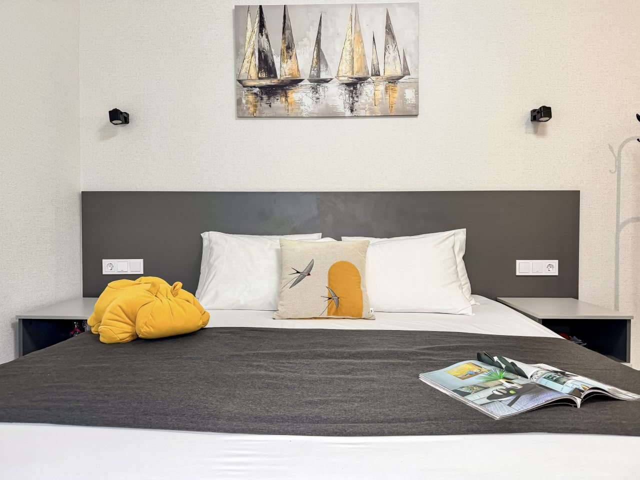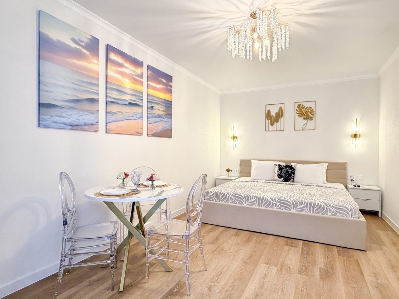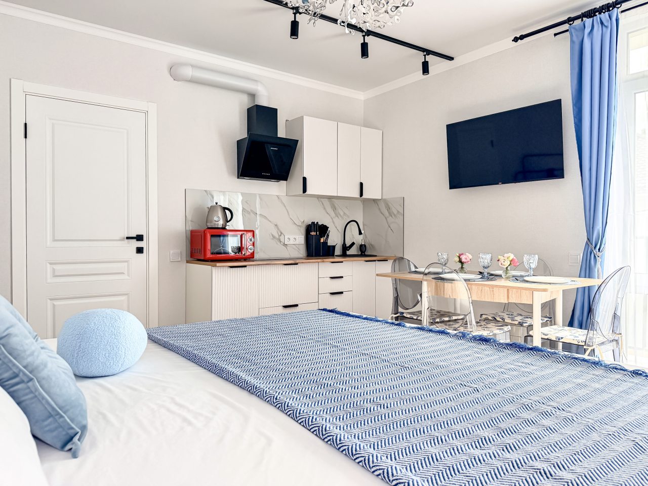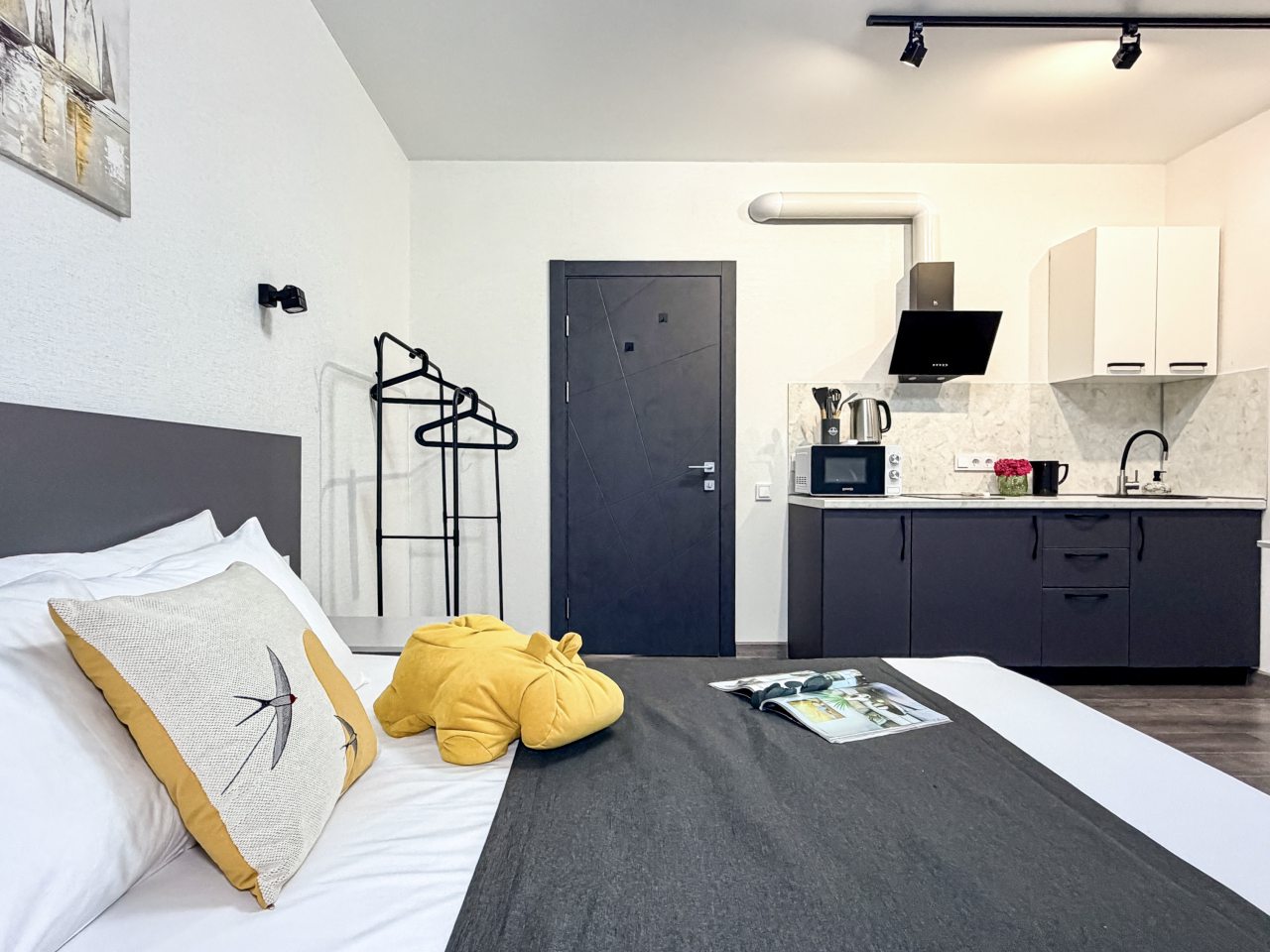 Номера оборудованы всем необходимым для полноценного отдыха, например: удобными спальными местами, кондиционером, телевизором, кухней, собственной ванной комнатой и зоной отдыха. Санузел укомплектован современной сантехникой, средствами личной гигиены, полотенцами и стиральной машиной. Качественный текстиль и декоративные детали создают атмосферу уюта.