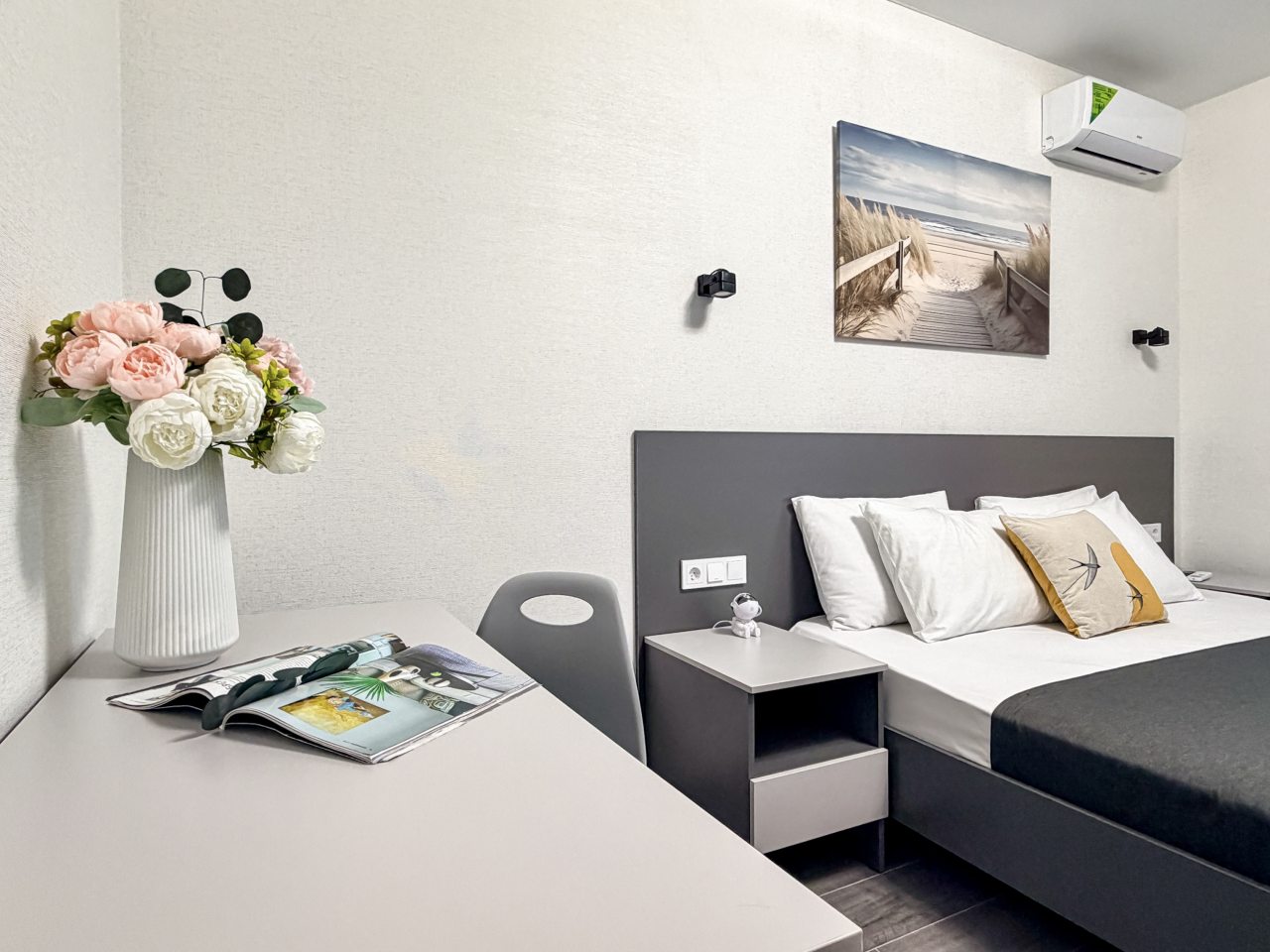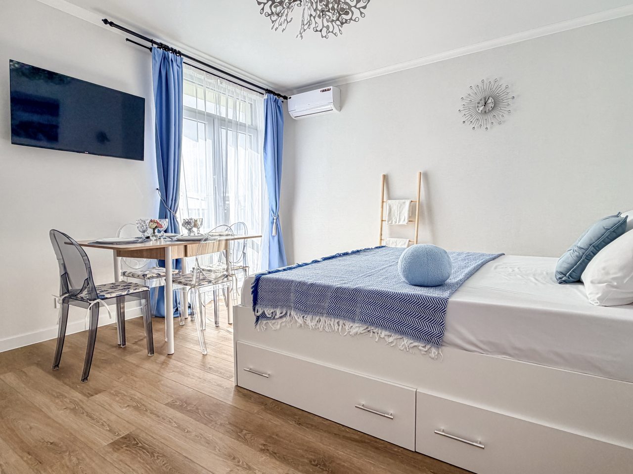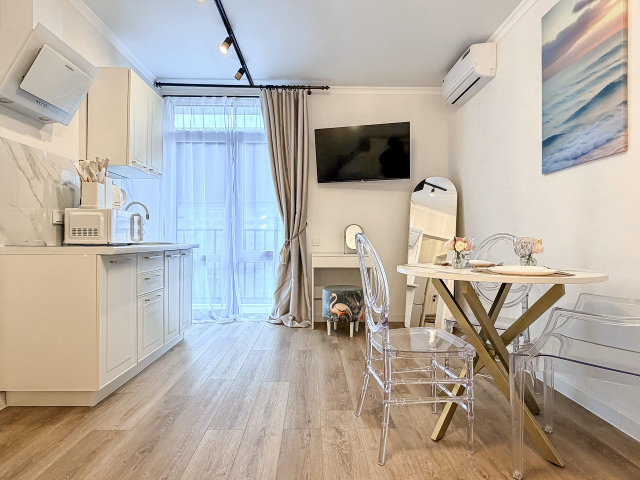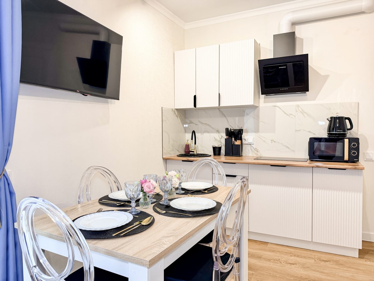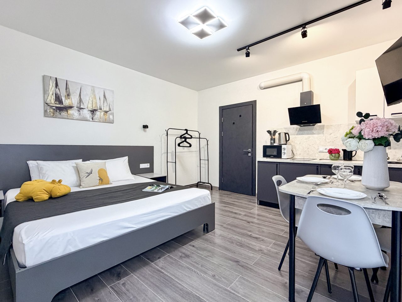 Номера оборудованы всем необходимым для полноценного отдыха, например: удобными спальными местами, кондиционером, телевизором, кухней, собственной ванной комнатой и зоной отдыха. Санузел укомплектован современной сантехникой, средствами личной гигиены, полотенцами и стиральной машиной. Качественный текстиль и декоративные детали создают атмосферу уюта.