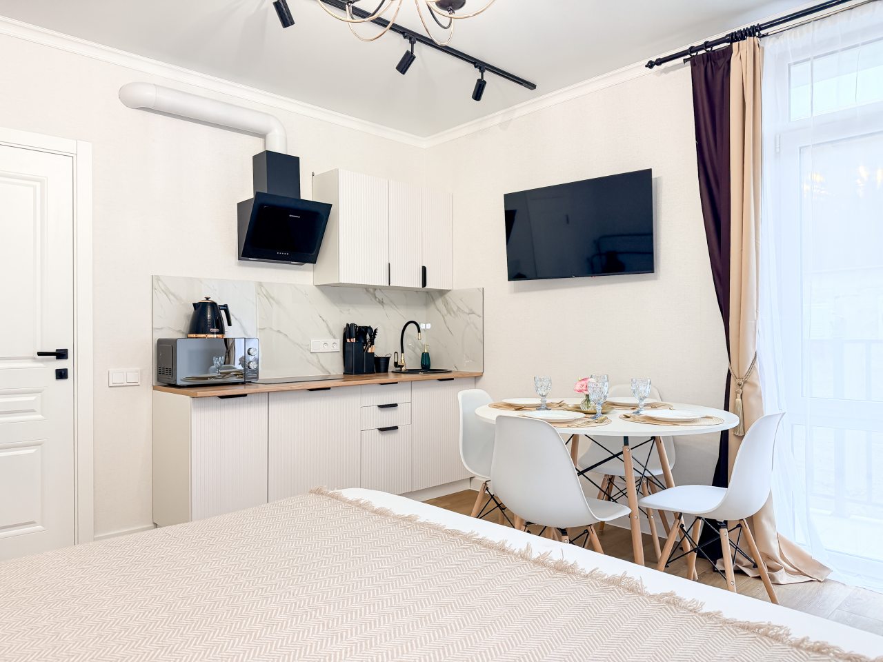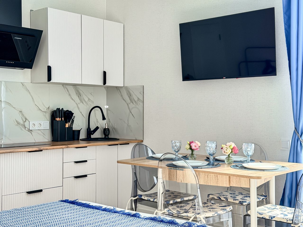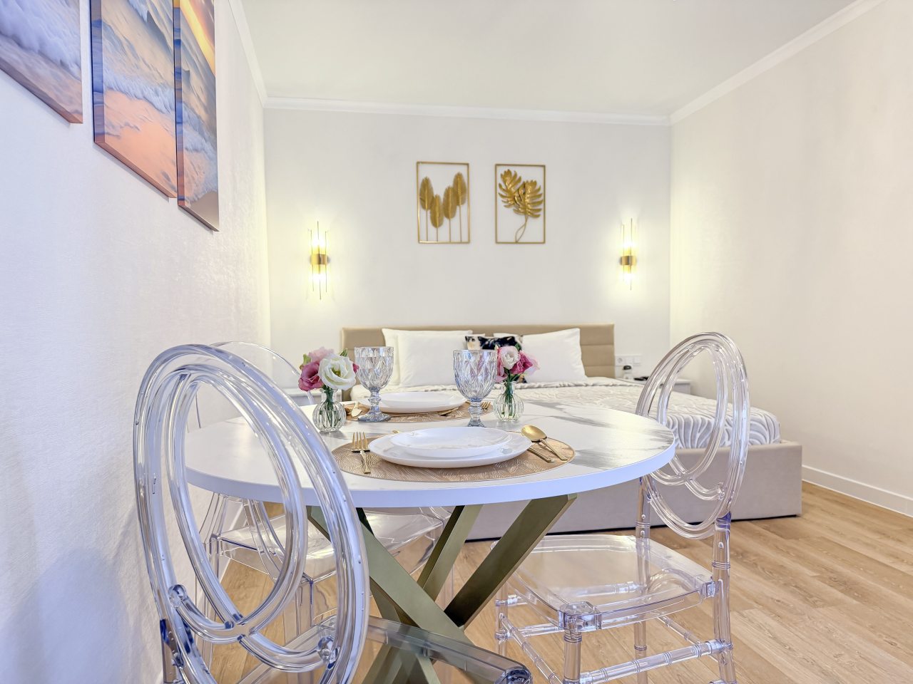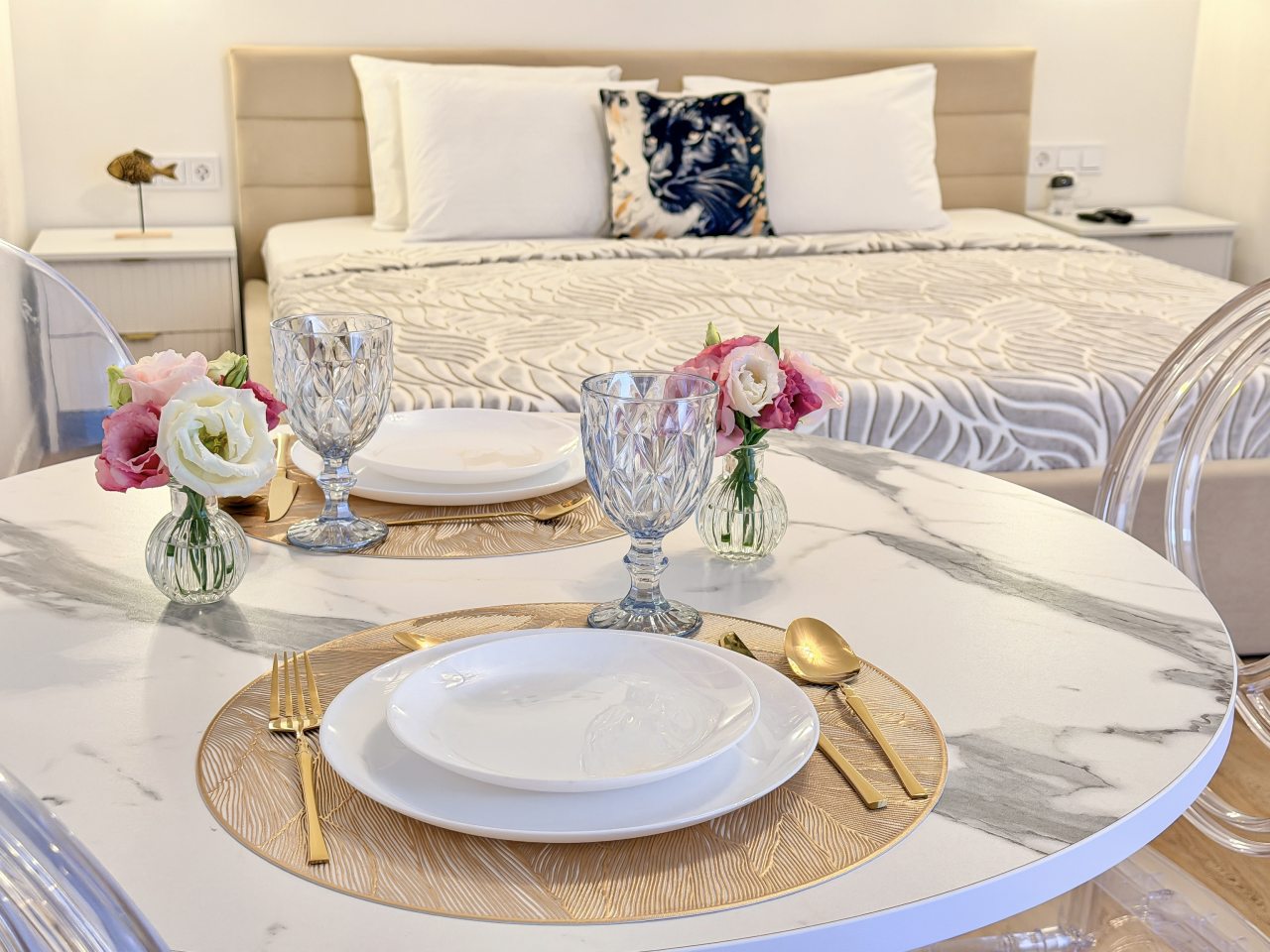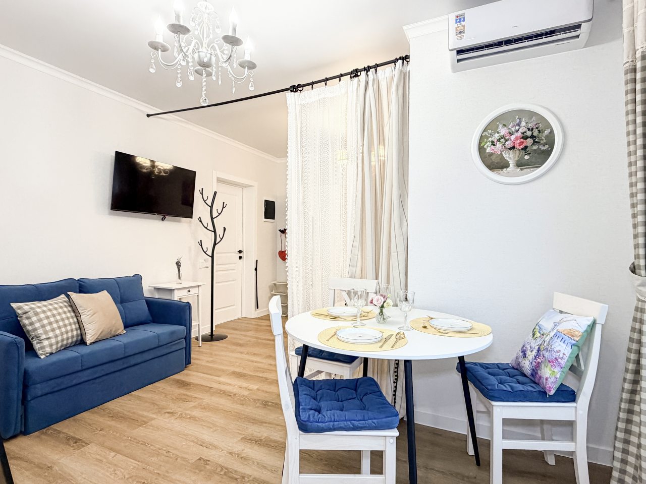 Номера оборудованы всем необходимым для полноценного отдыха, например: удобными спальными местами, кондиционером, телевизором, кухней, собственной ванной комнатой и зоной отдыха. Санузел укомплектован современной сантехникой, средствами личной гигиены, полотенцами и стиральной машиной. Качественный текстиль и декоративные детали создают атмосферу уюта.