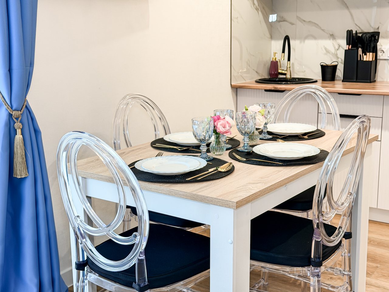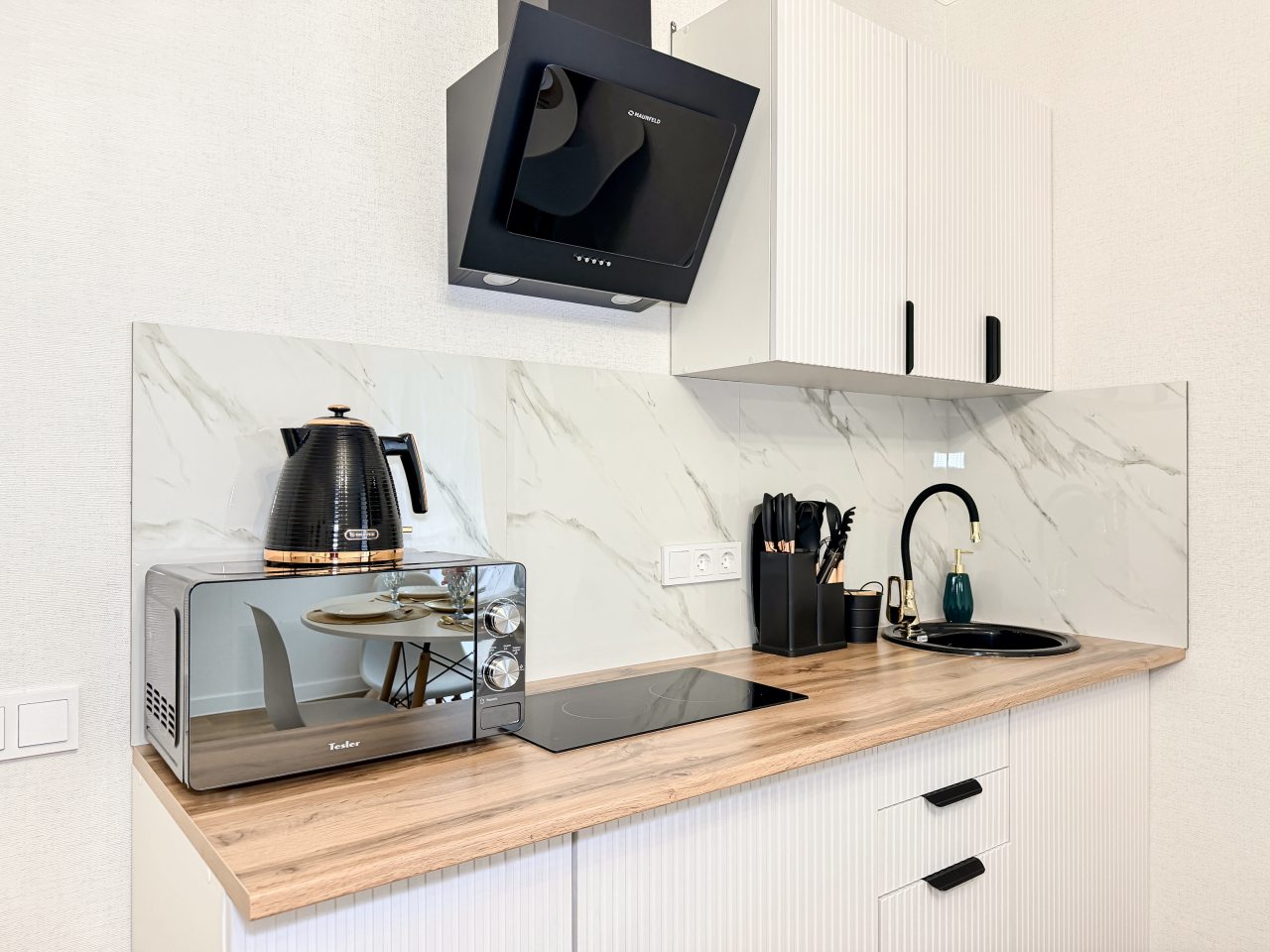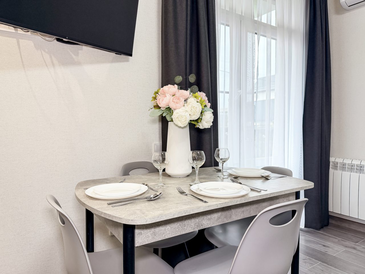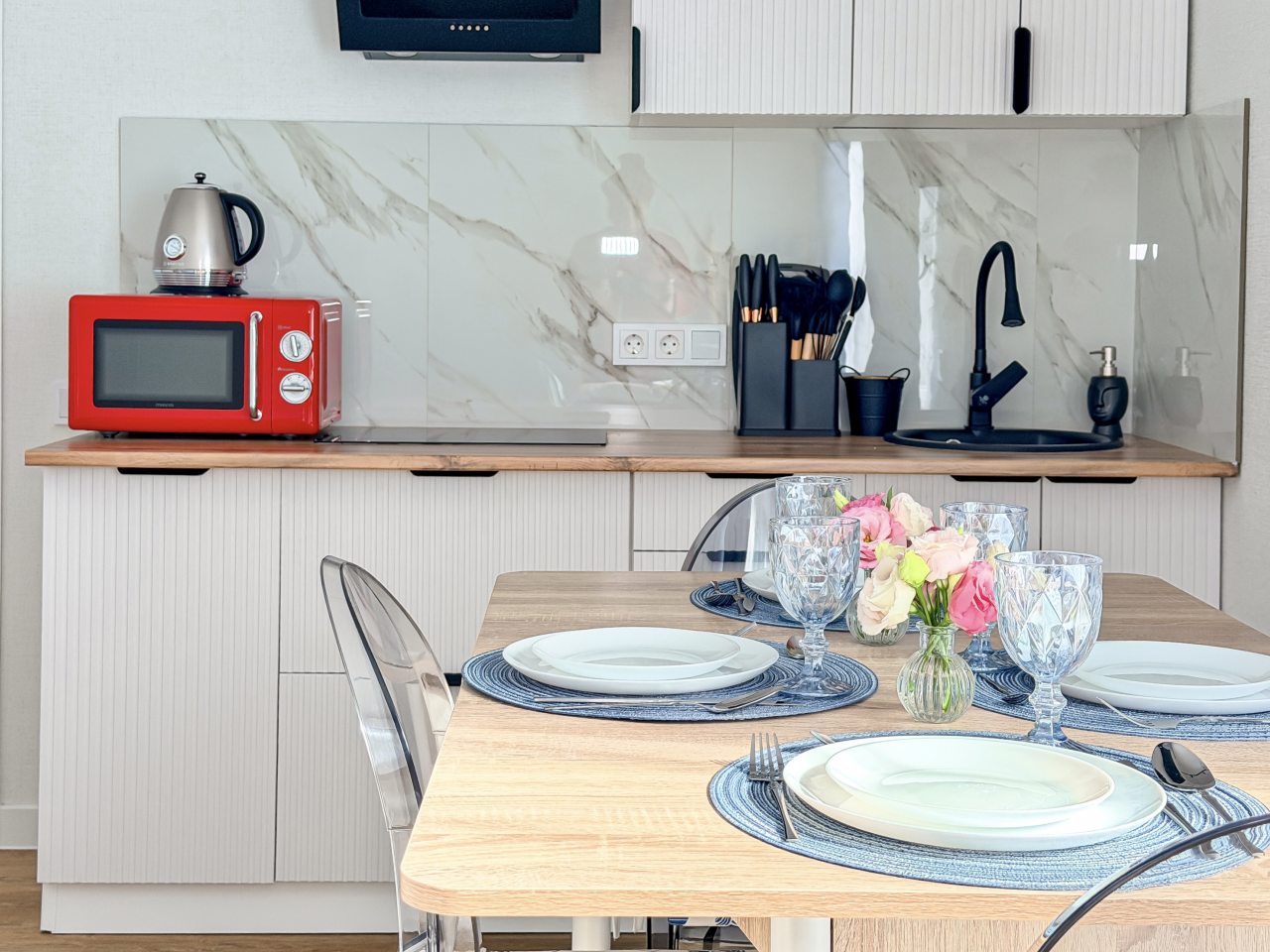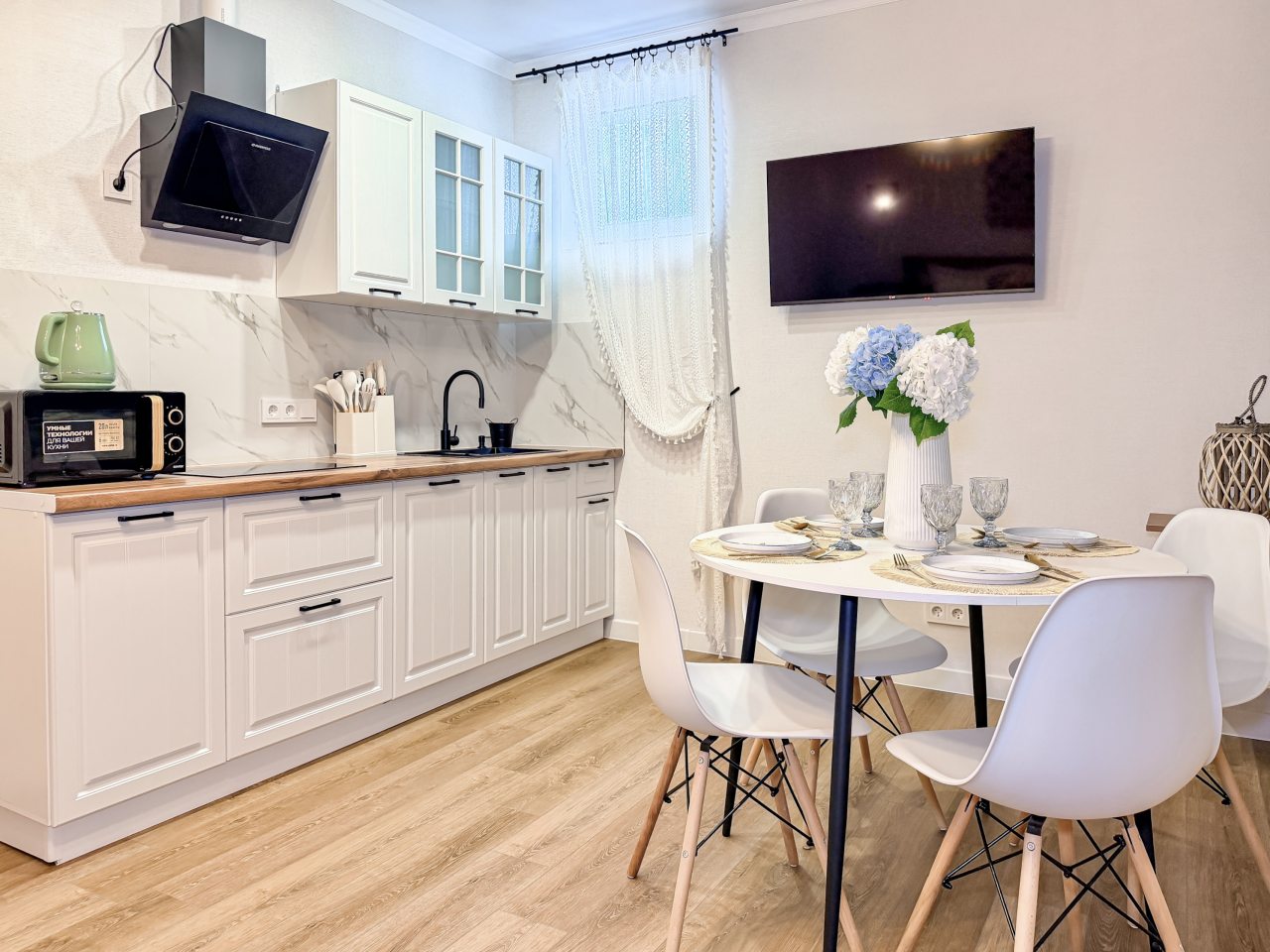 Номера оборудованы всем необходимым для полноценного отдыха, например: удобными спальными местами, кондиционером, телевизором, кухней, собственной ванной комнатой и зоной отдыха. Санузел укомплектован современной сантехникой, средствами личной гигиены, полотенцами и стиральной машиной. Качественный текстиль и декоративные детали создают атмосферу уюта.