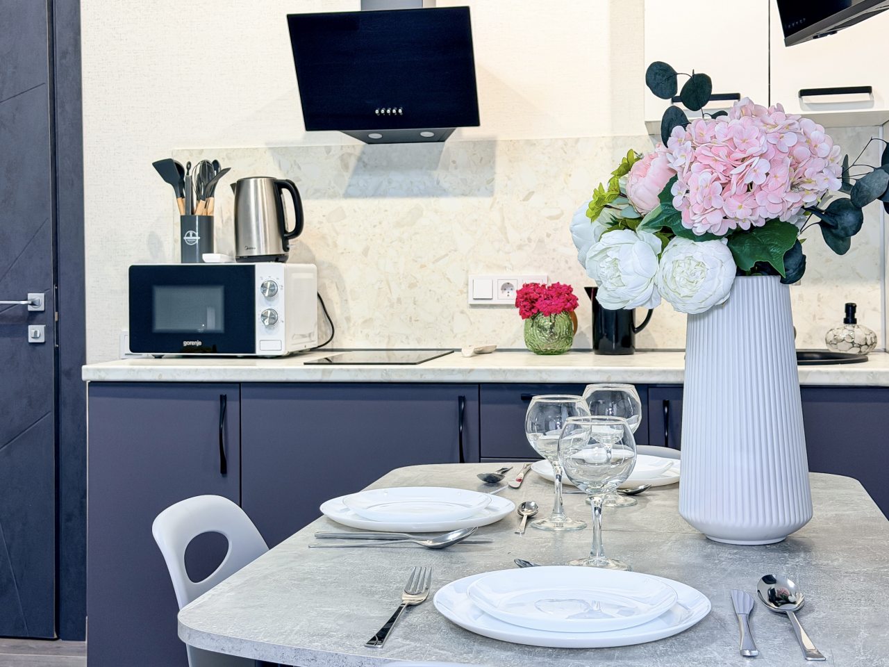 Апартаменты оснащены кухонной зоной, на которой гости могут готовить свои любимые блюда. Пообедать можно в одном из ближайших кафе.