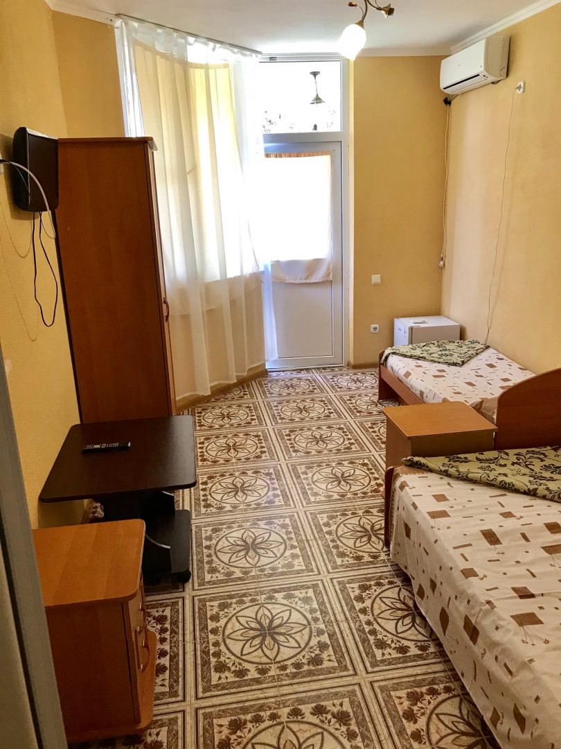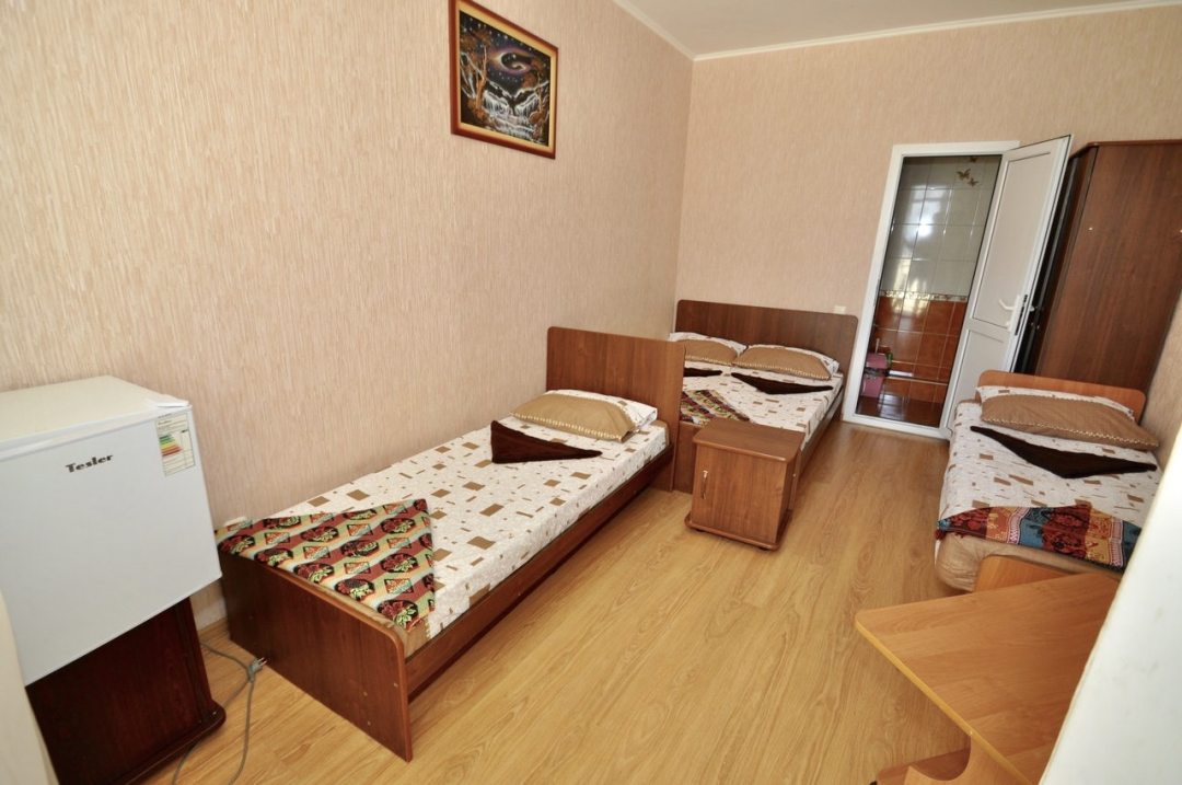Уютные номера с кондиционером, большими удобными кроватями, стеллажами, телевизором. Интерьер выполнен в теплых тонах, в каждом номере есть отдельный санузел с душем.