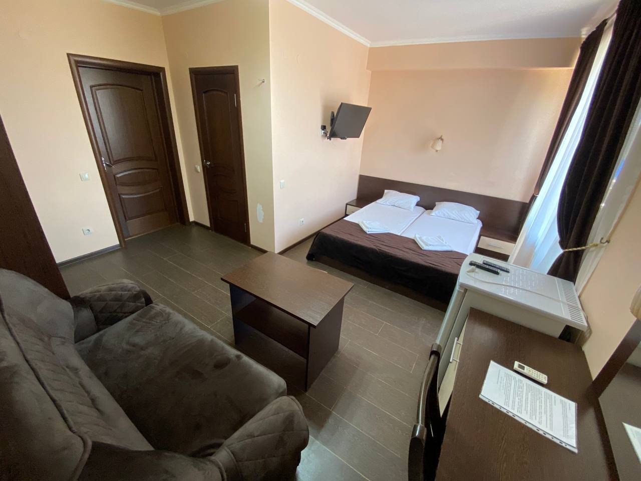Хорошо разместились в этом гостевом доме, он занимает место вдоль первой линии побережья. С вокзала мы добрались сюда очень быстро. Номера оснащены мебелью, у нас была своя ванна. Полотенца предоставили. Кушать можно в соседней столовой - это самый близкий доступный вариант. Неподалеку от гостевого дома работает развлекательный центр. Интернет работал отлично.