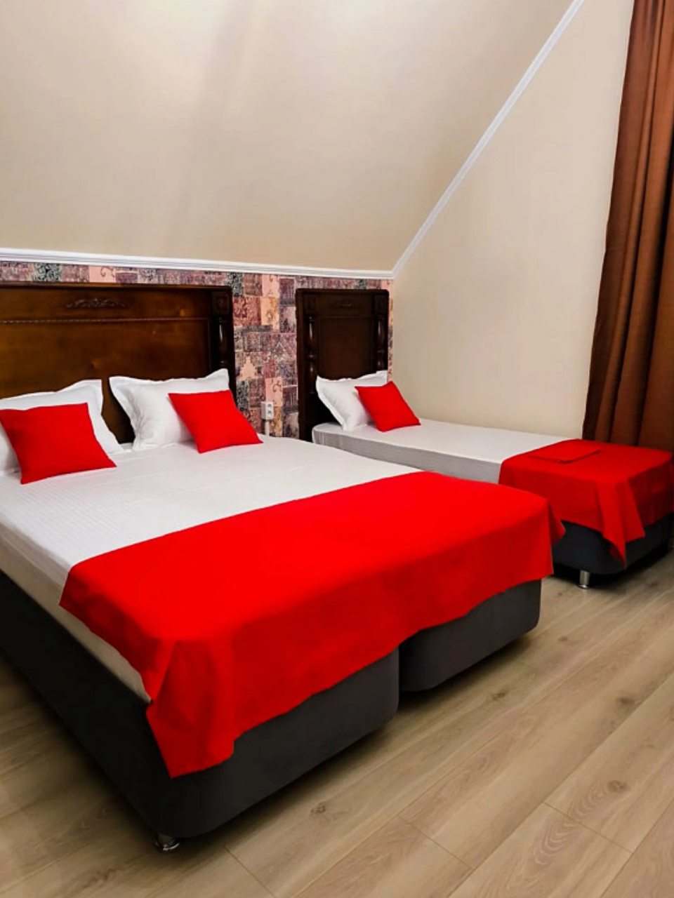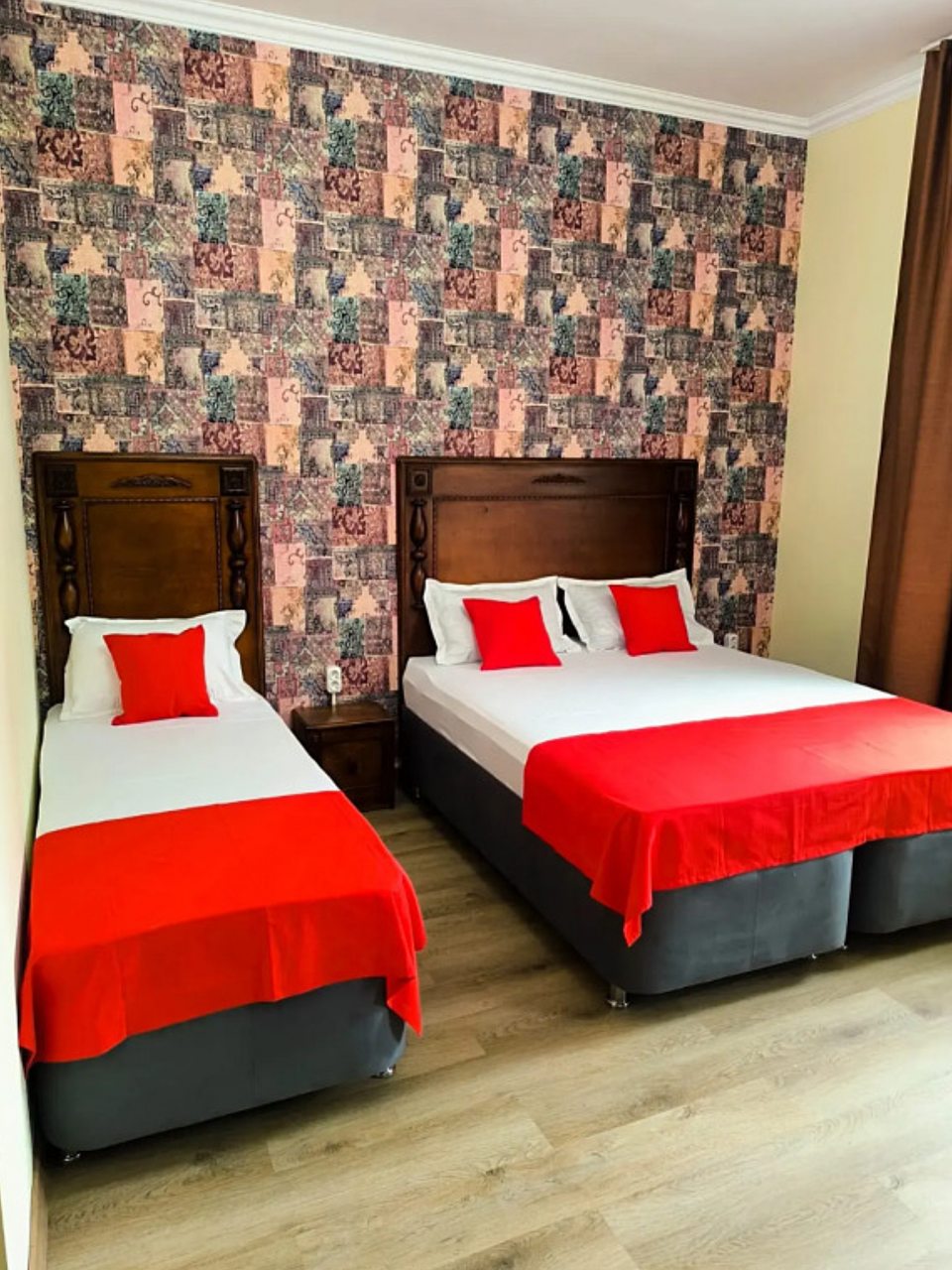 Для размещения гостей доступны номера различных категории и вместимости, что позволяет подобрать идеальный вариант, как для индивидуального путешественника, так и для семьи. Все они оснащены качественной мебелью, современной техникой и собственной ванной комнатой для комфортного проживания. Из удобств установлены: телевизор, кондиционер, шкаф для одежды, стол и стулья. В распоряжении гостей бесплатный доступ к Wi-Fi.