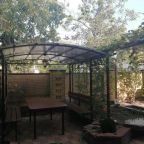 Проживали тут неделю и остались довольны. Красивый просторный номер с отличными удобствами. Есть общая охраняемая стоянка. В самом доме общая кухня с набором посуды, можно готовить в любое время.