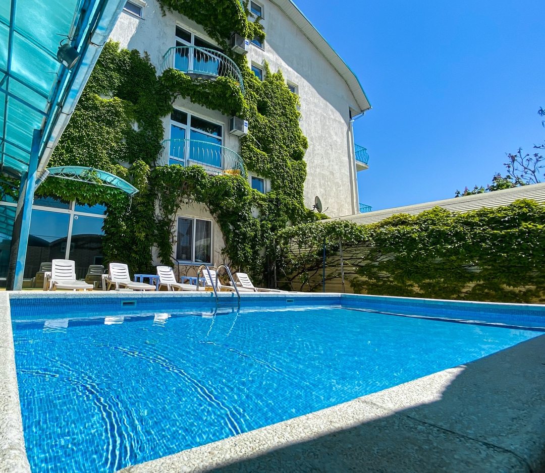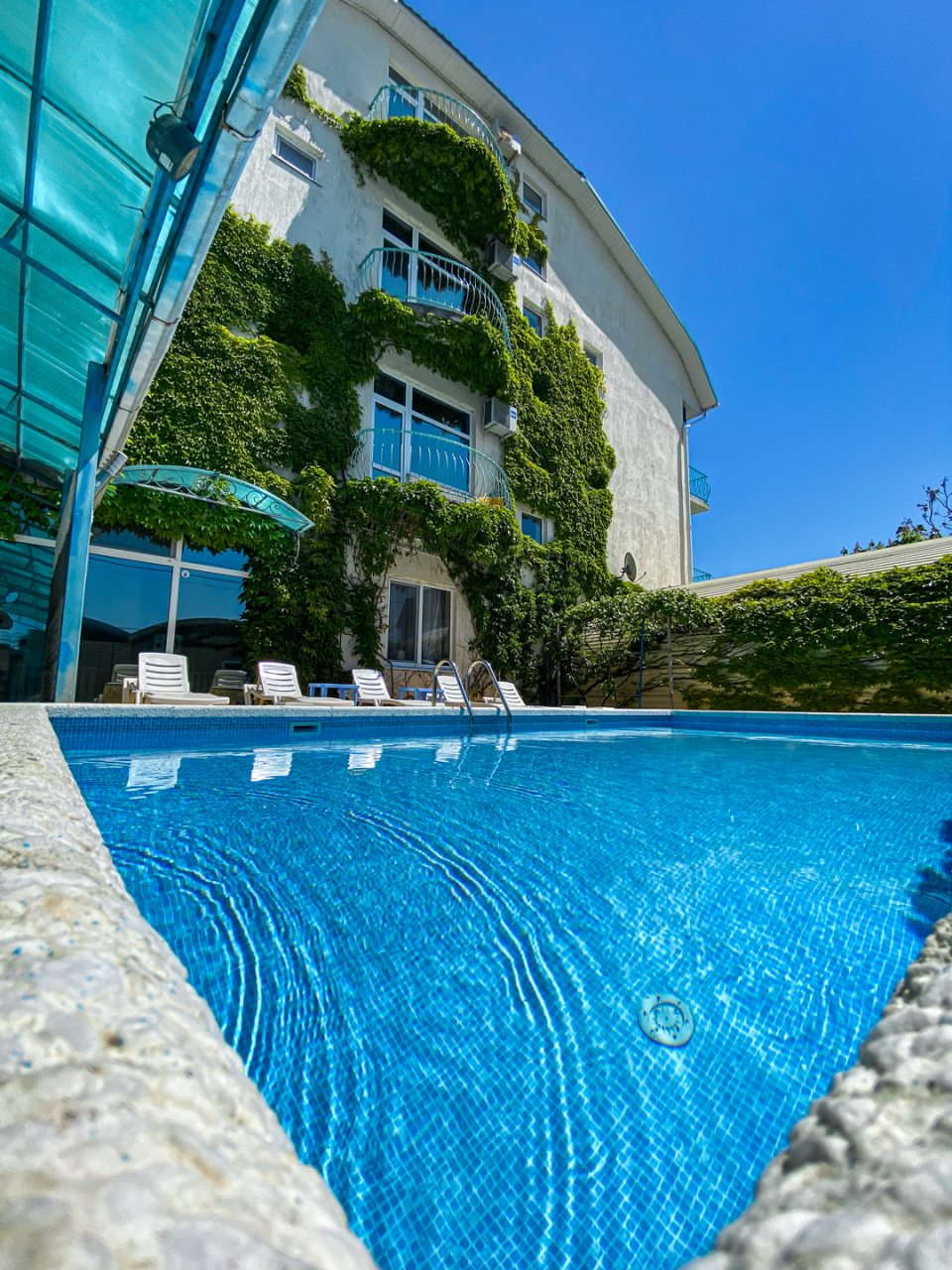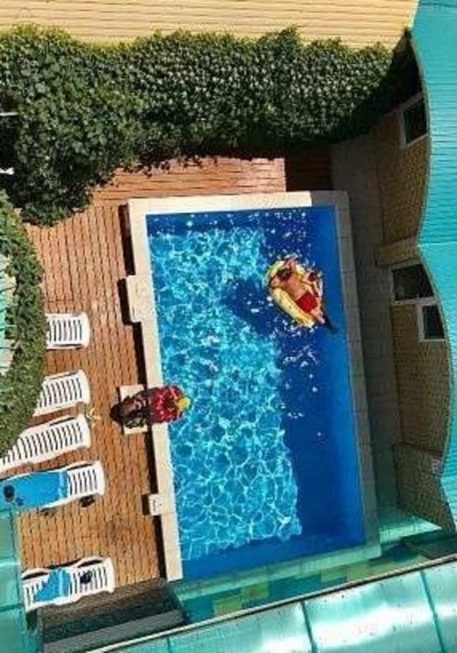 Бассейн с подогревом. Работает с 09:00 до 21:00 ежедневно.