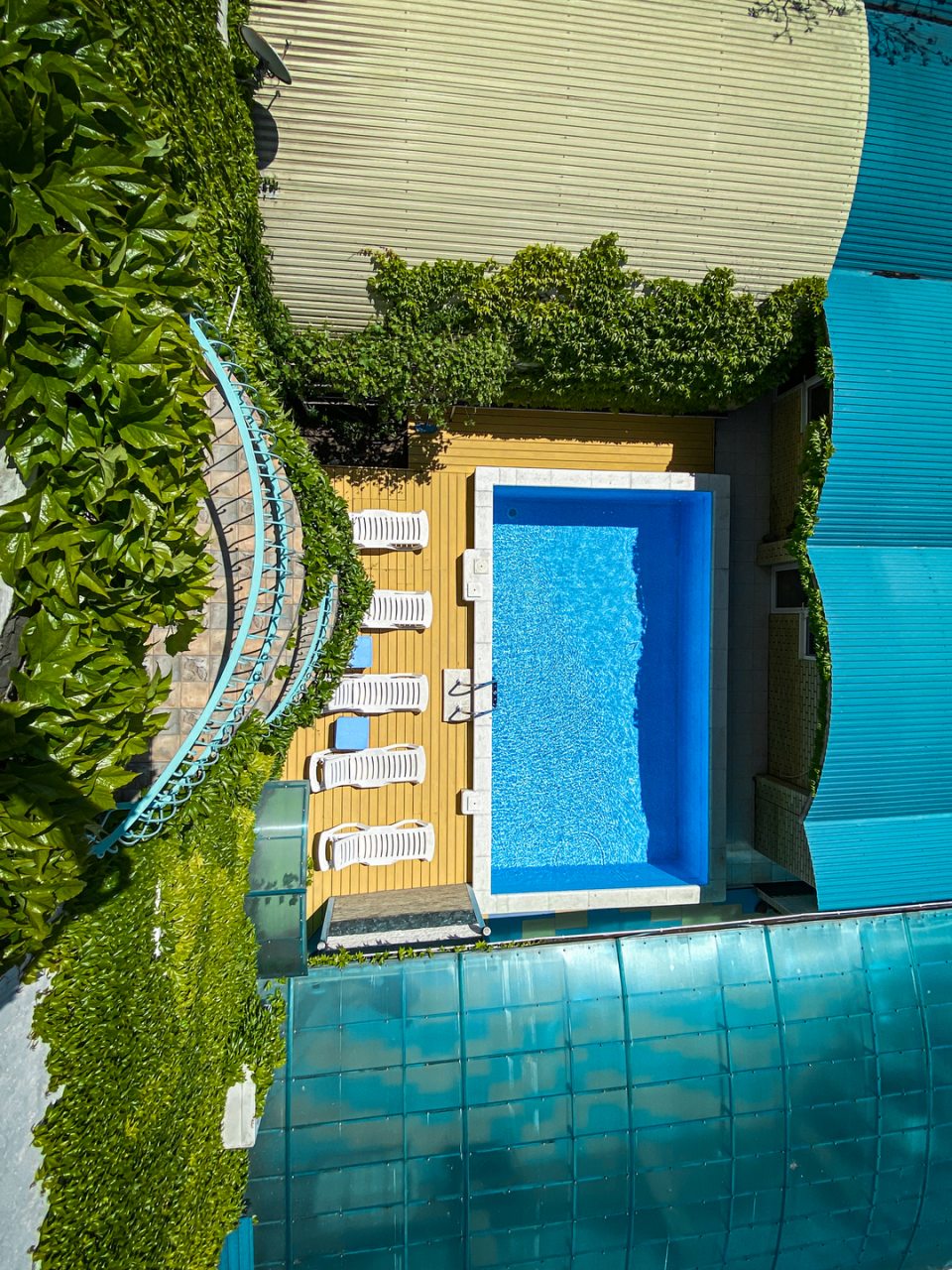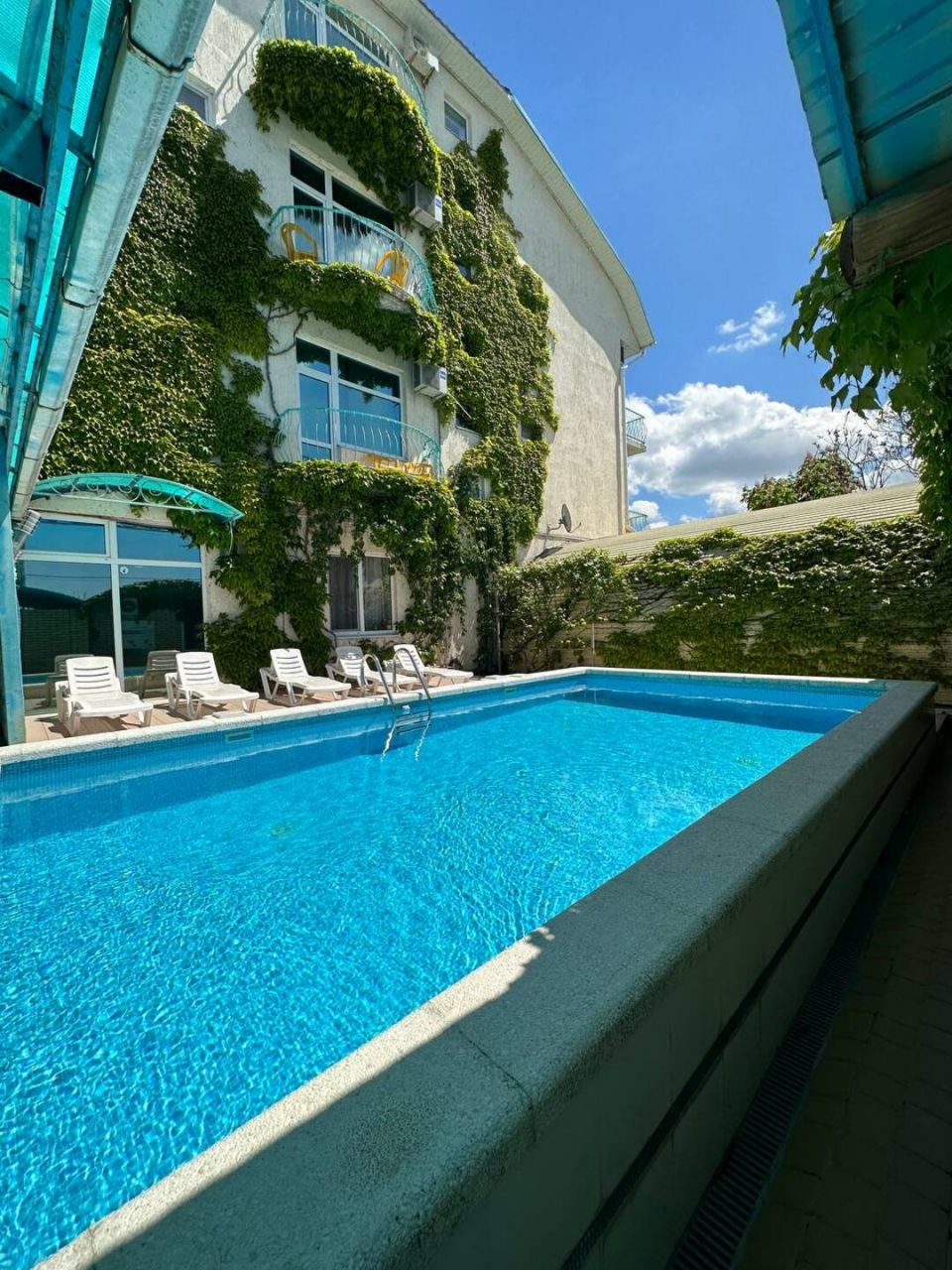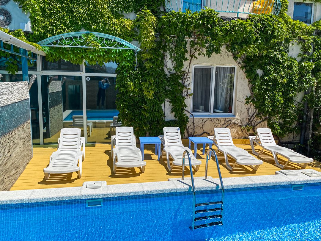 Бассейн с подогревом. Работает с 09:00 до 21:00 ежедневно.