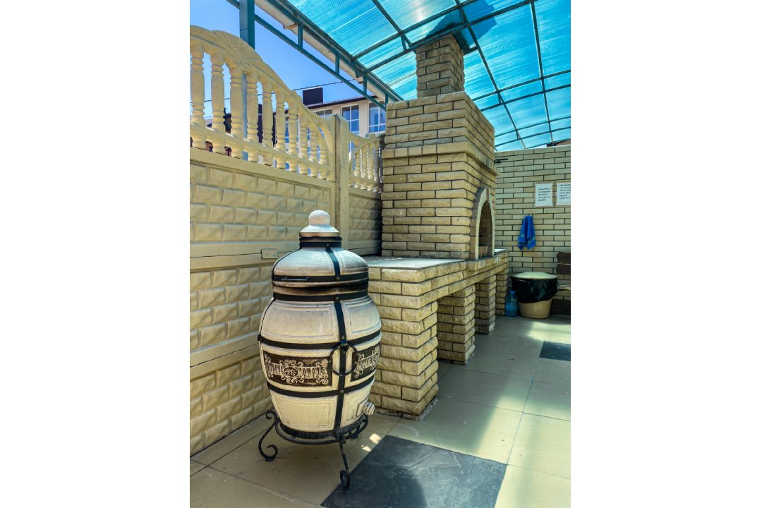Здесь есть летняя кухня для самостоятельного приготовления, а во дворе мангал для шашлыка или овощей на огне.