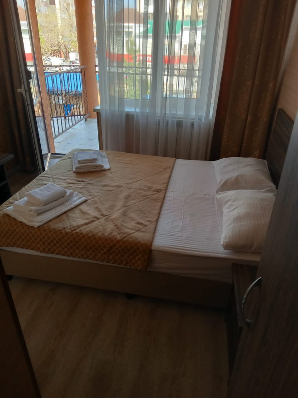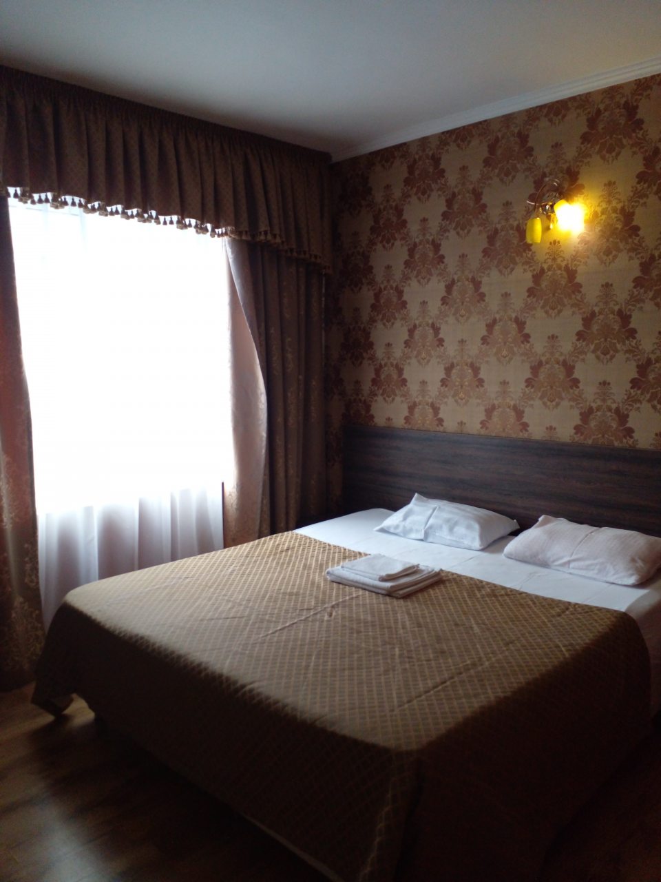 Отель Фламинго предлагает неплохие условия за небольшой бюджет. Здесь есть ресторан, но также доступна и общая кухня, на которой можно готовить самостоятельно. На территории имеются места для отдыха, площадка для детей. Интерьер в номерах спокойный. Выглядит все достаточно скромно, но при этом уютно и мебель хорошего качества. Нас здесь все устроило.
