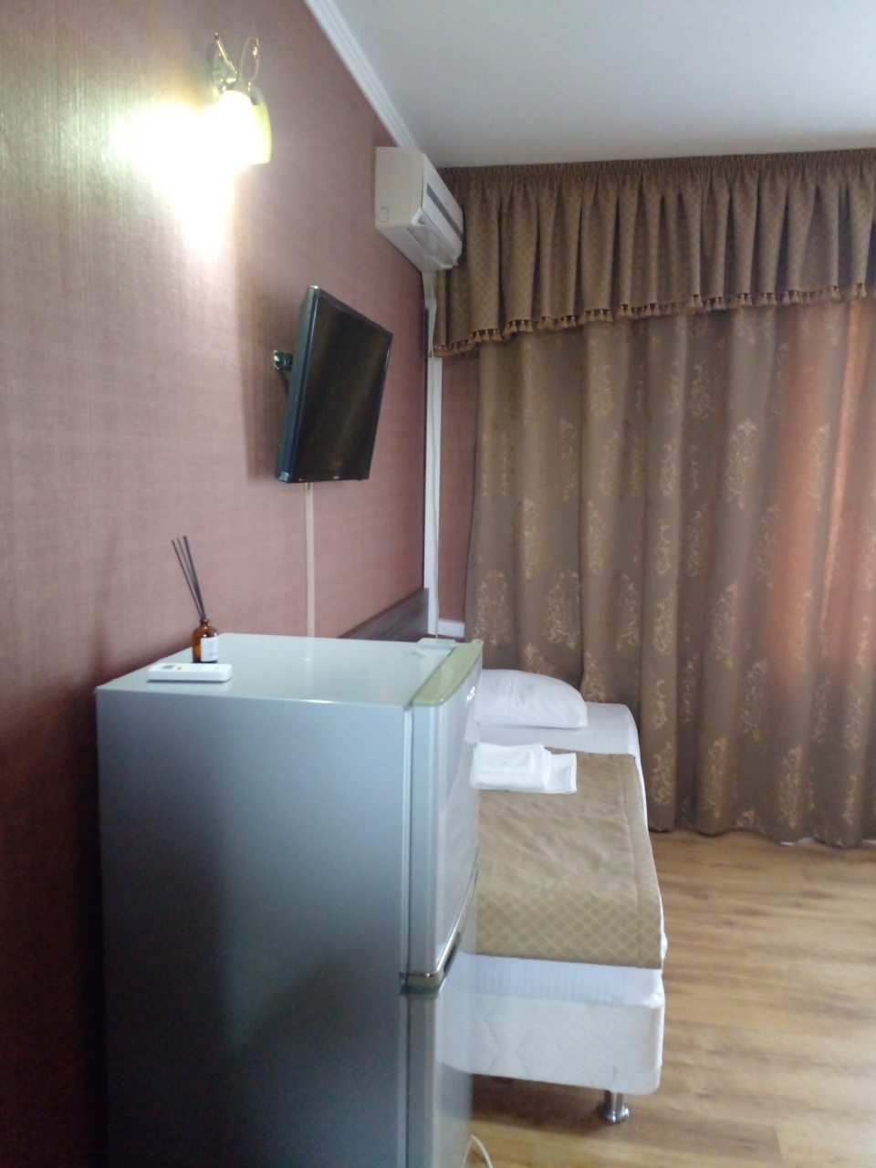 Из недостатков: не хватает посуды и чайника в номере. А также средств личной гигиены. На телевизоре работает несколько каналов