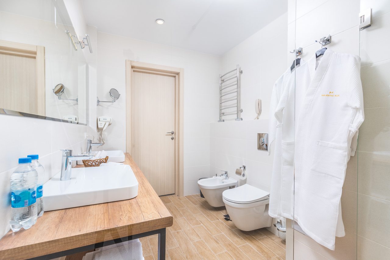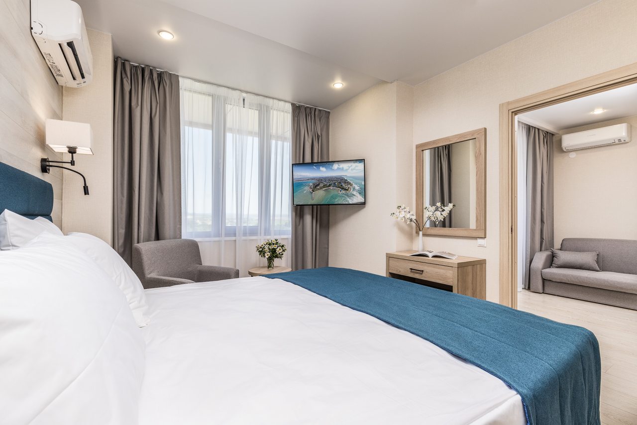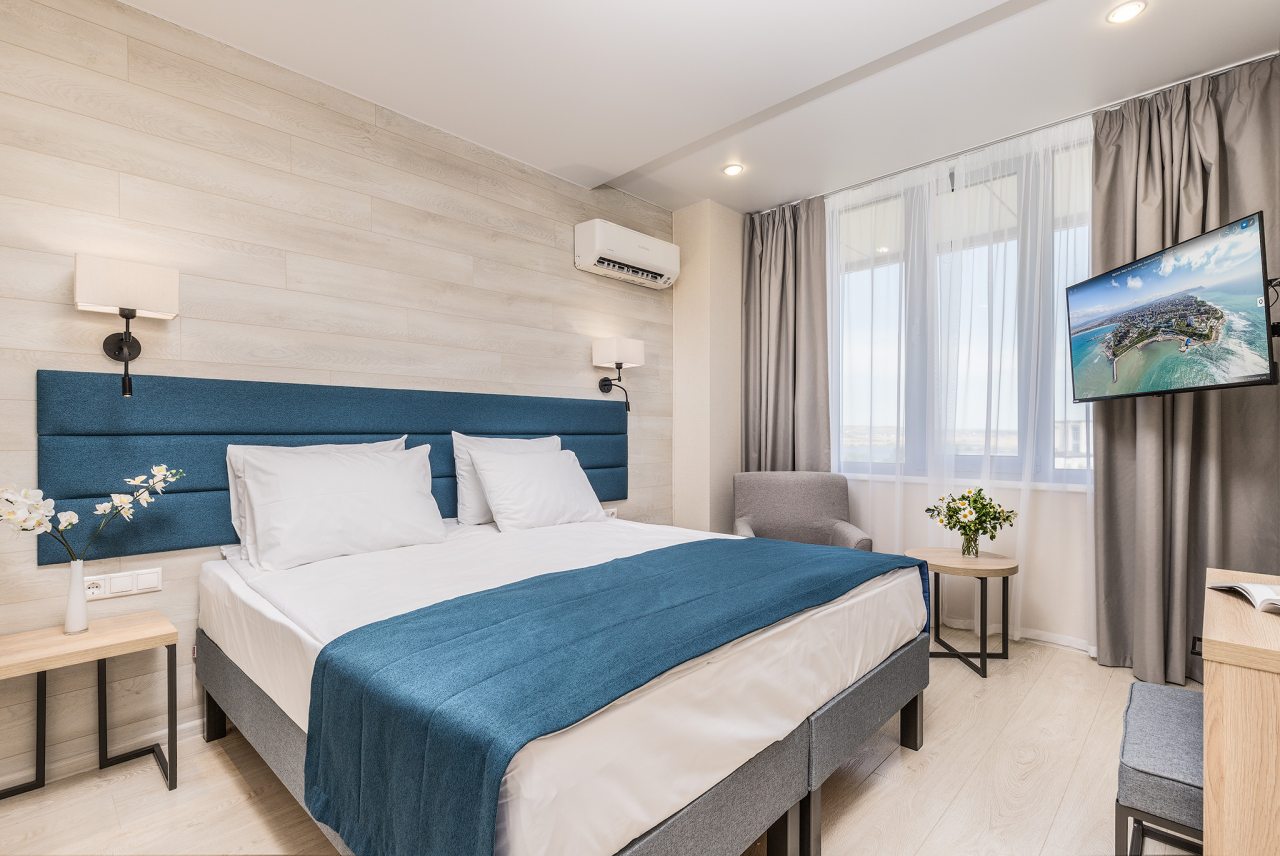 Для нас этот отель показался идеальным вариантом для проживания, потому что находится почти в центре города, цены за номер демократичные, а главное качество и сервис на высоте! Мы жили в стандартном номере, могу назвать его уютным, приятные оттенки в дизайне. У нас был свой чайник и посуда. Полотенца чистые, мягкие и приятно пахнут. Питание отменное, все очень вкусное, свежее и сытное.