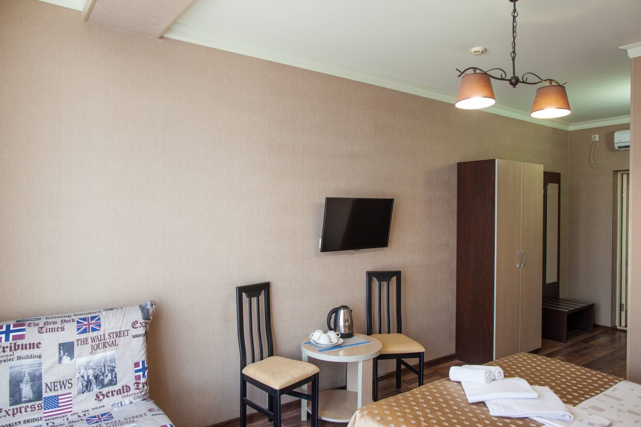 Номера оформлены в классическом стиле. Каждое помещение оборудовано удобной мебелью, кондиционером, телевизором и собственной ванной комнатой.