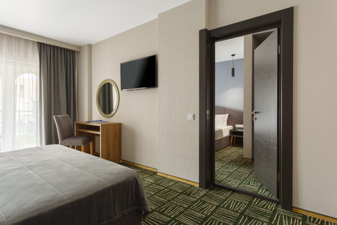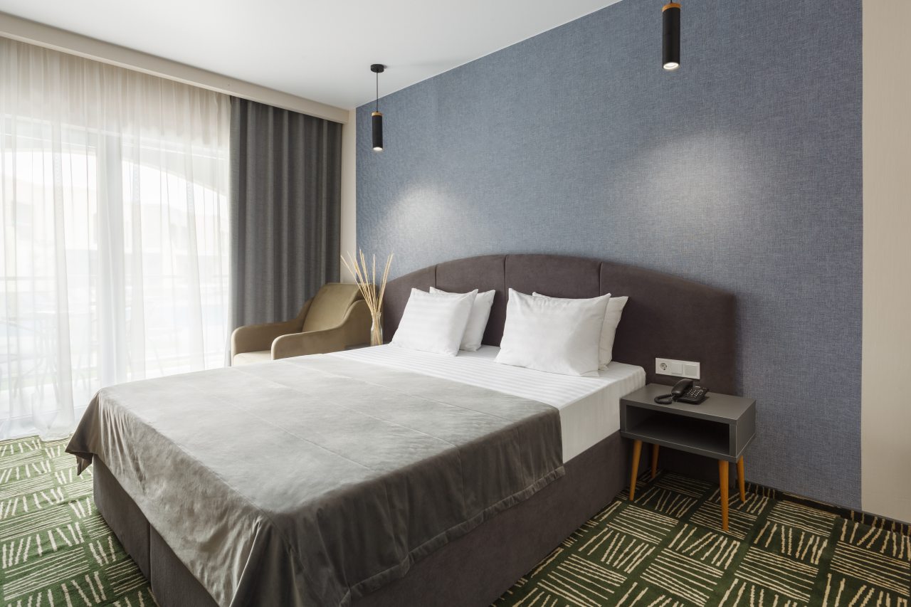 К размещению подготовлены номера разного уровня вместимости и категории. Все они оформлен в едином стиле, спокойных тонах. В каждом оборудована новая, необходимая мебель, современная техника, а также комфортные спальные места с удобными матрасами. Для удобства постояльцев в номере установлен сейф, телевизор с плоским экраном, а также чайные наборы. Индивидуальные ванные комнаты укомплектованы новой сантехникой и косметическим набором.