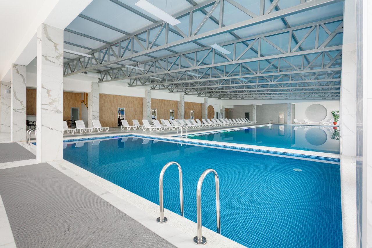 Территория, много бассейны разной глубины, аквапарк,бар, хамам, финская баня и ещё несколько. Крытый теплый бассейн. Тренажерный зал.