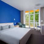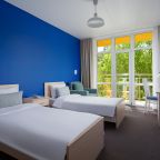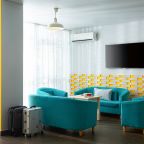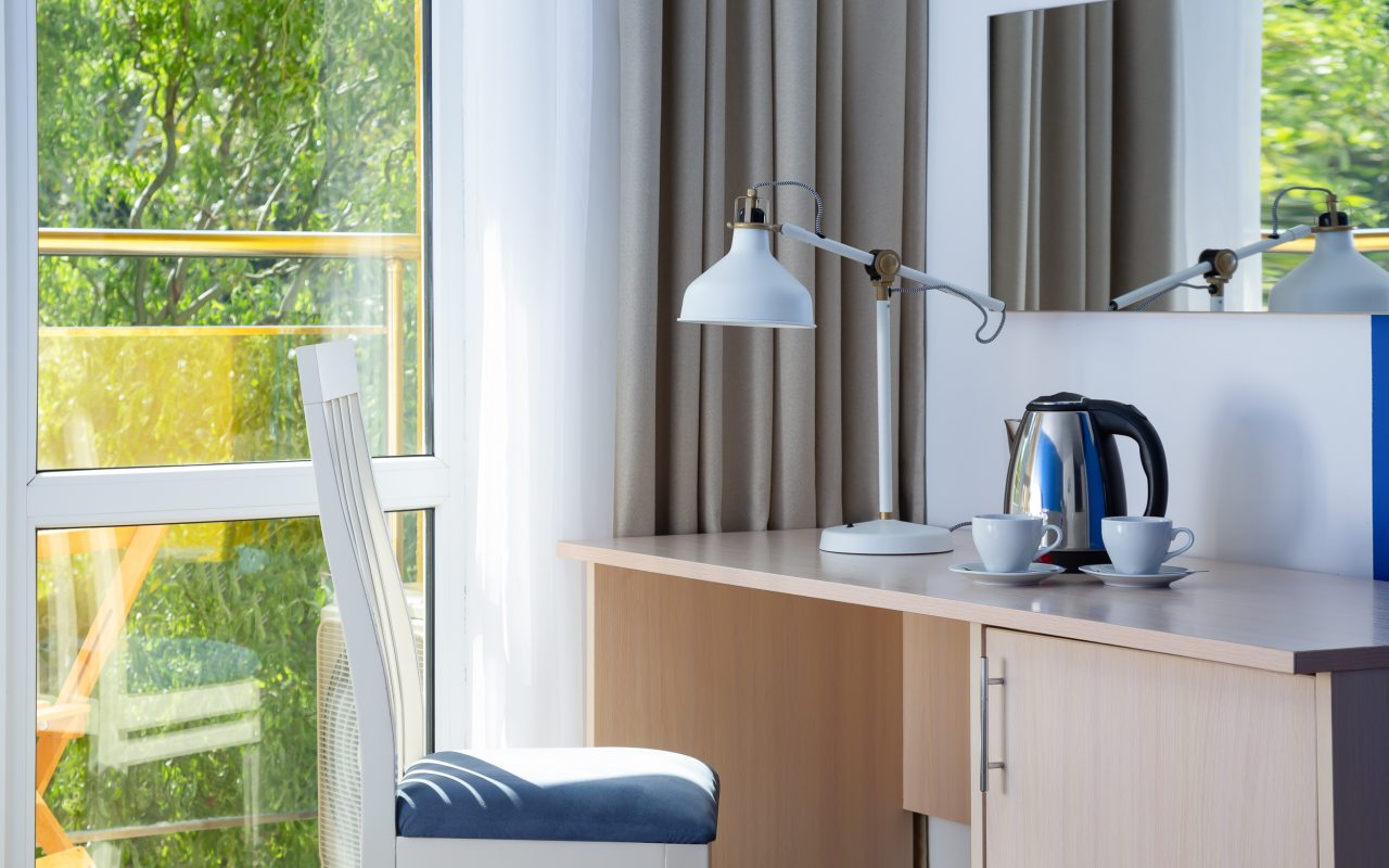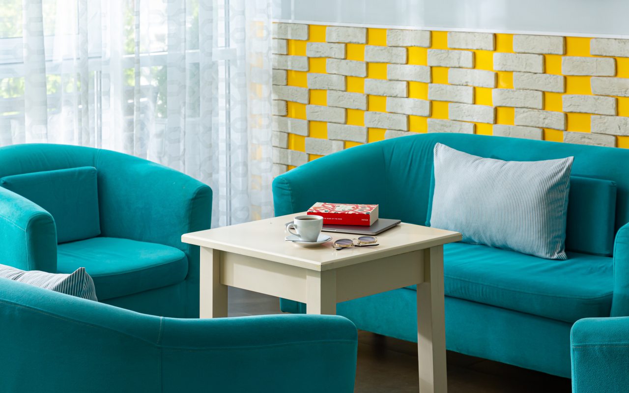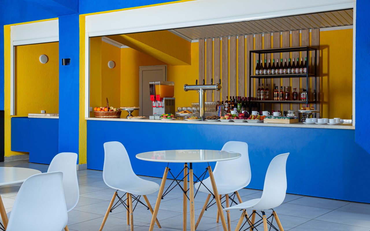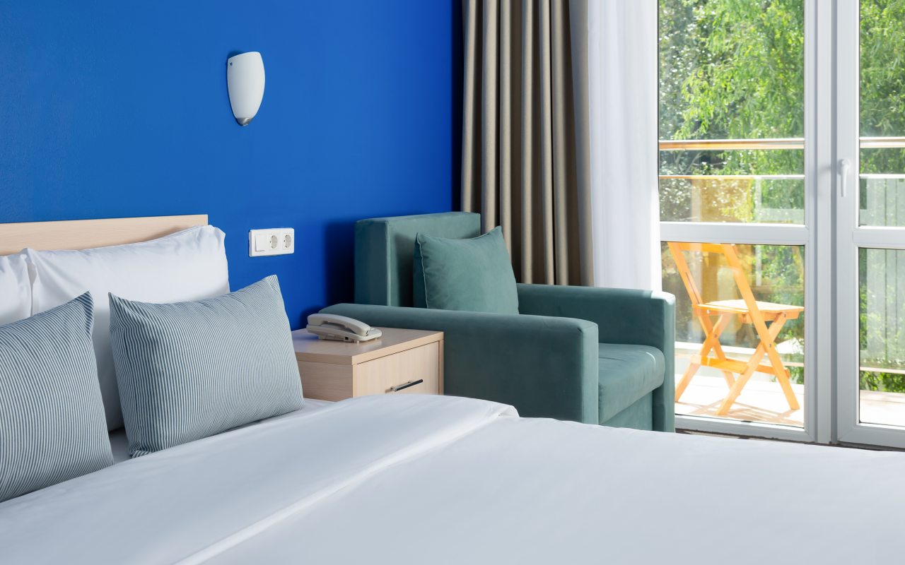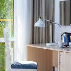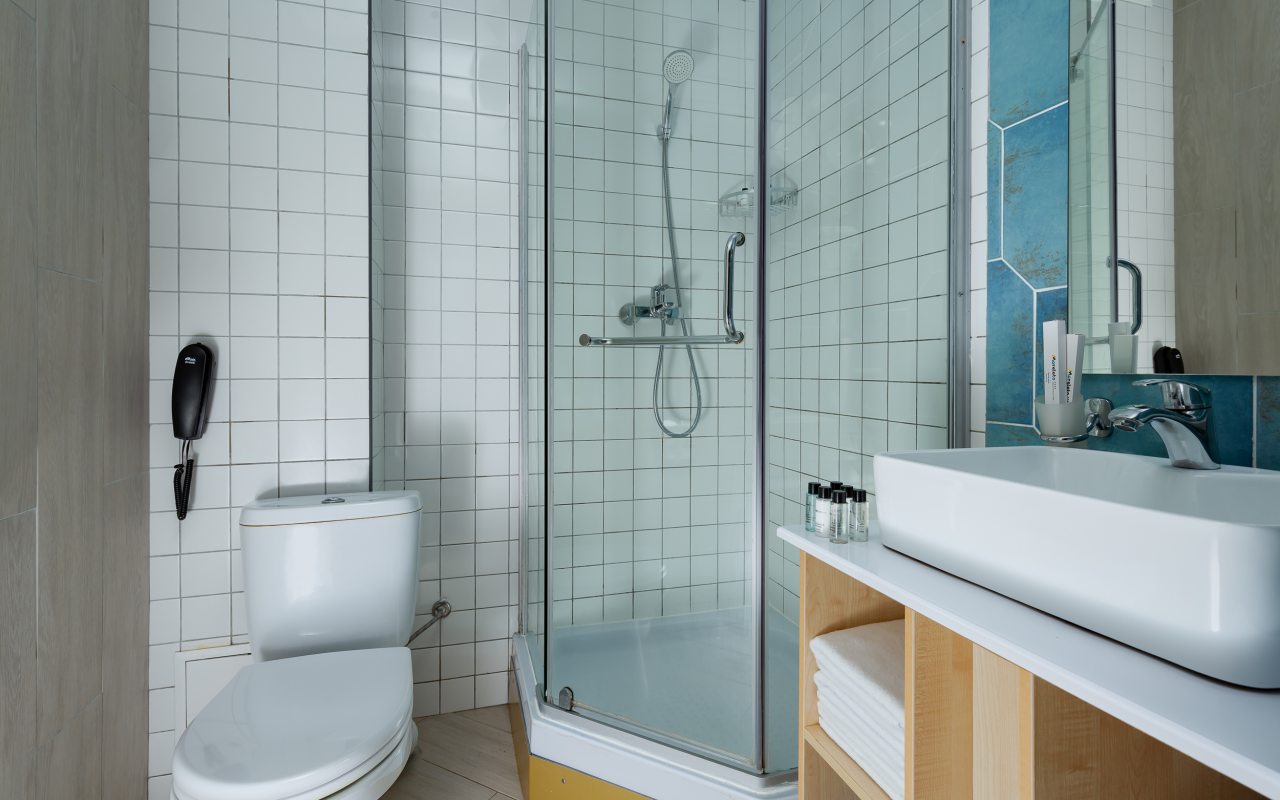 Все номера выполнены в современном стиле и желто-синих цветах, рассчитанные максимум на трех человек. В комнате есть все необходимое: удобное спальное место (кровать с ортопедическим матрасом), кондиционер, телевизор, мягкая мебель, прикроватные тумбы, письменный стол, персональная ванная с гигиеническими принадлежностями.