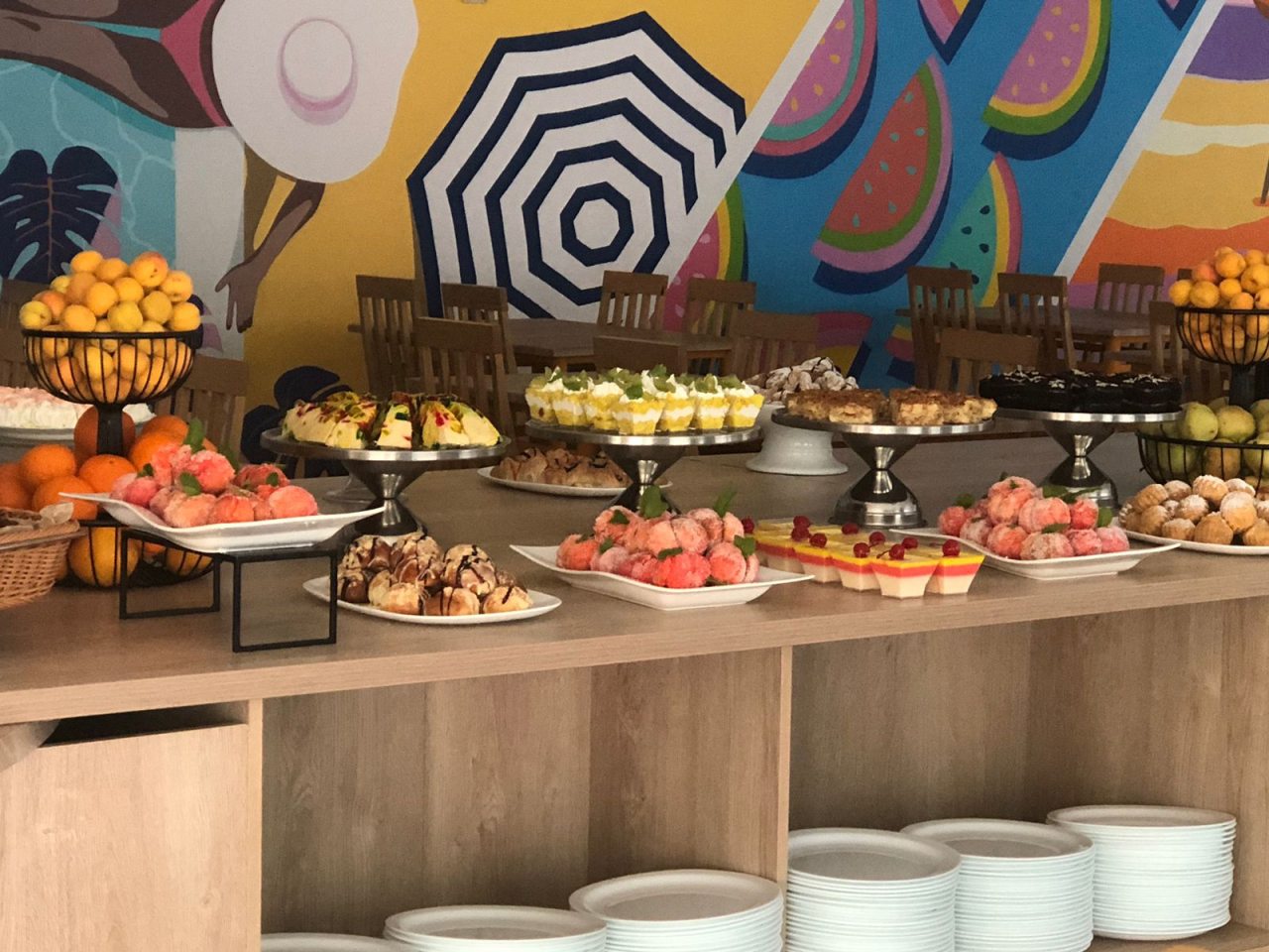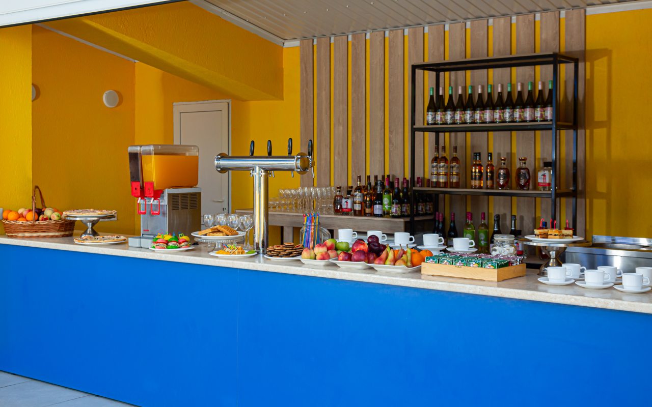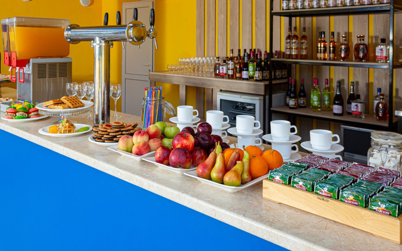 На территории работает ресторан по системе «шведский стол», бар с прохладительными напитками. По утрам сервируются завтраки.