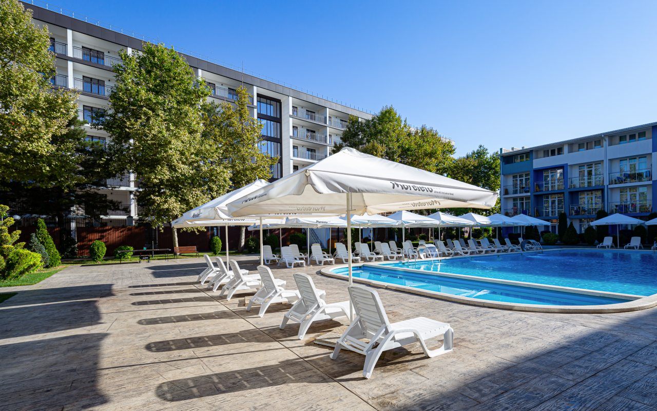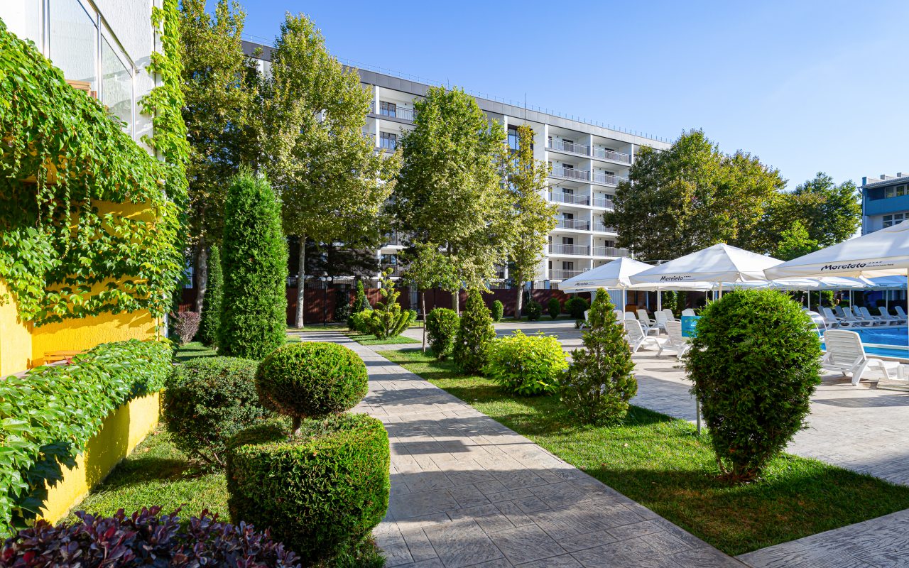Всегда есть свободные места для отдыха у бассейна и на пляже, разнообразное и вкусное питание, энергичные аниматоры, подогреваемый бассейн, отдельный огороженный пляж, тихая и живописная аллея к морю.