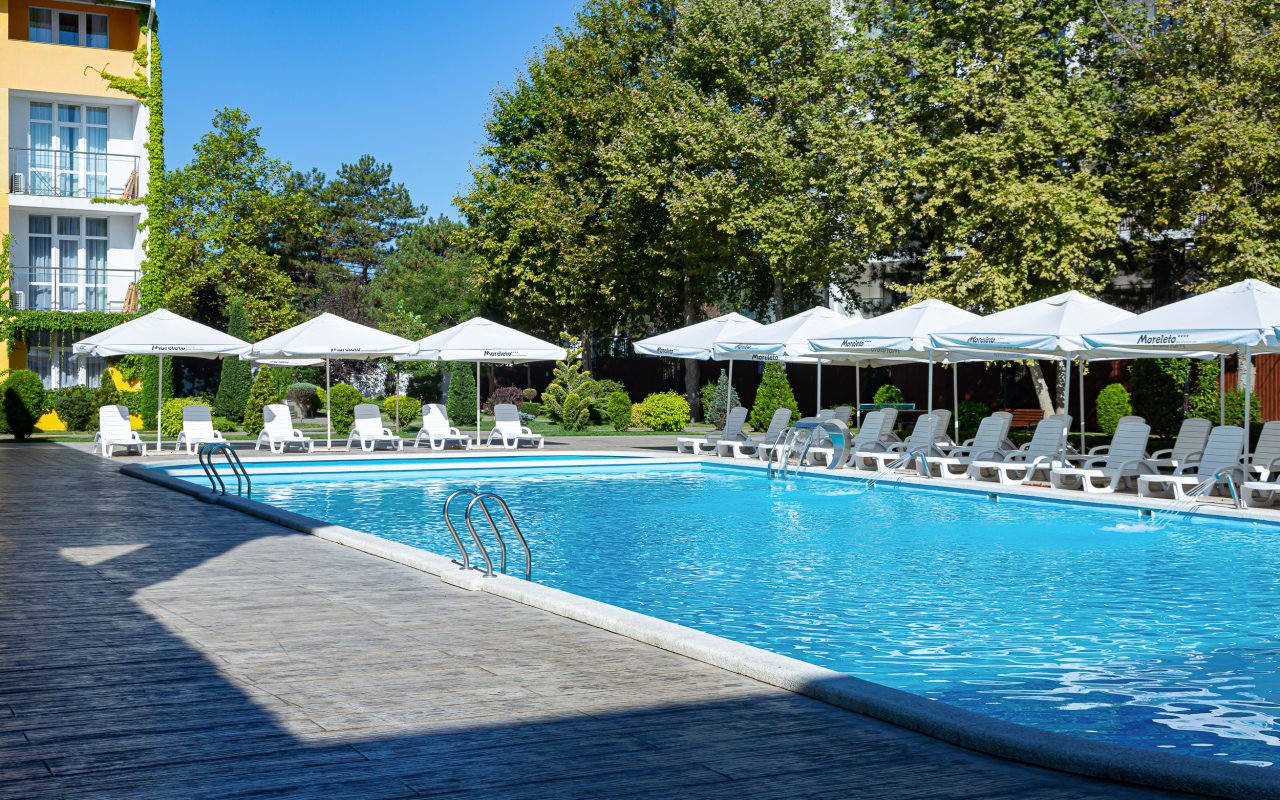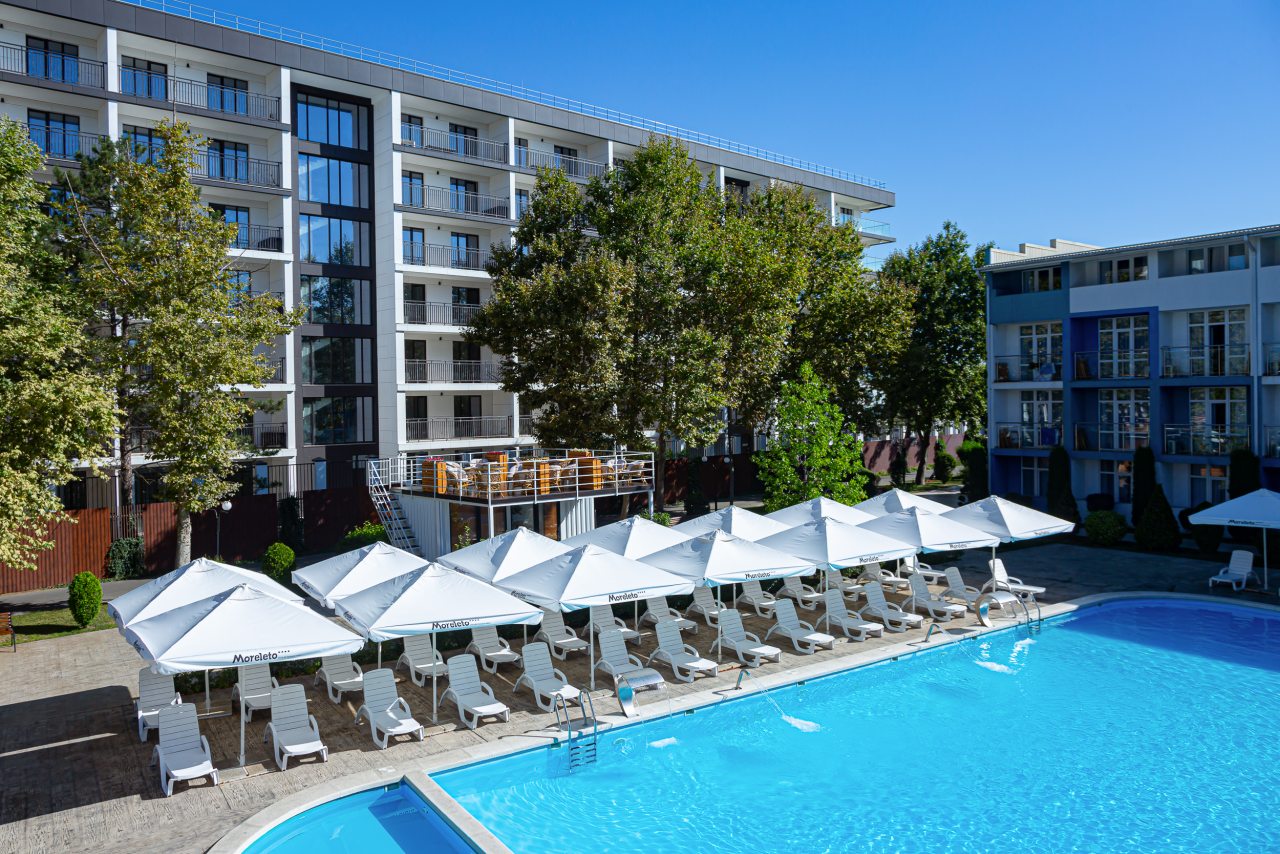 Отель «MoreLeto» располагается на черноморском побережье в Анапе. Любители активного отдыха оценят: бассейн, вело- и пешие прогулки, настольный теннис, бильярд, экскурсионное бюро, вечера кино. Для детей на территории есть игровая площадка и прокат самокатов. Также к услугам доступны следующие сервисы: парковка, терраса, зонты от солнца, шезлонги, прачечная, доступ к Wi-Fi. На официальном сайте 101Hotels.com вы можете не только выгодно забронировать номер в этой гостинице и визуально оценить удобство расположения отеля на карте города.