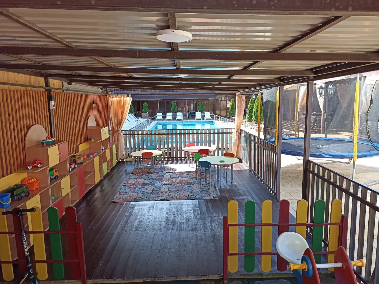 На большой территории имеется бассейн с подогревом, где могут освежиться не только взрослые, но и дети, и шезлонги, на которых приятно отдохнуть. У бассейна работает бар с коктейлями. Для маленьких постояльцев имеется площадка и игровая комната, где проводятся анимационные программы. Бесплатно предоставляются прогулочные коляски, детские кровати, стулья для кормления, детские ванны и многое другое.