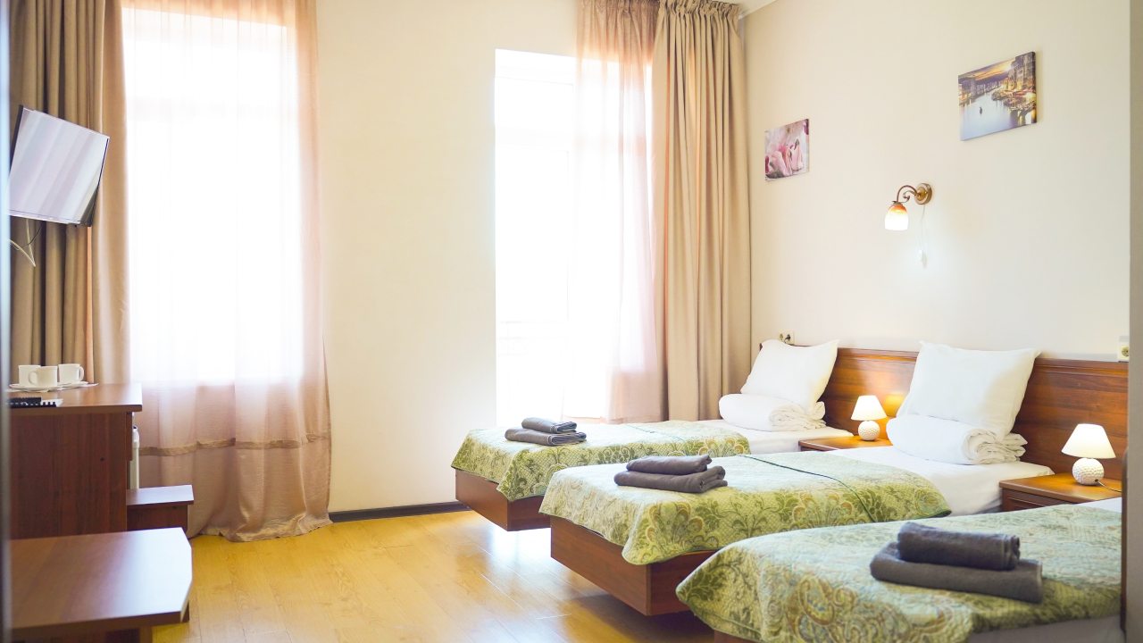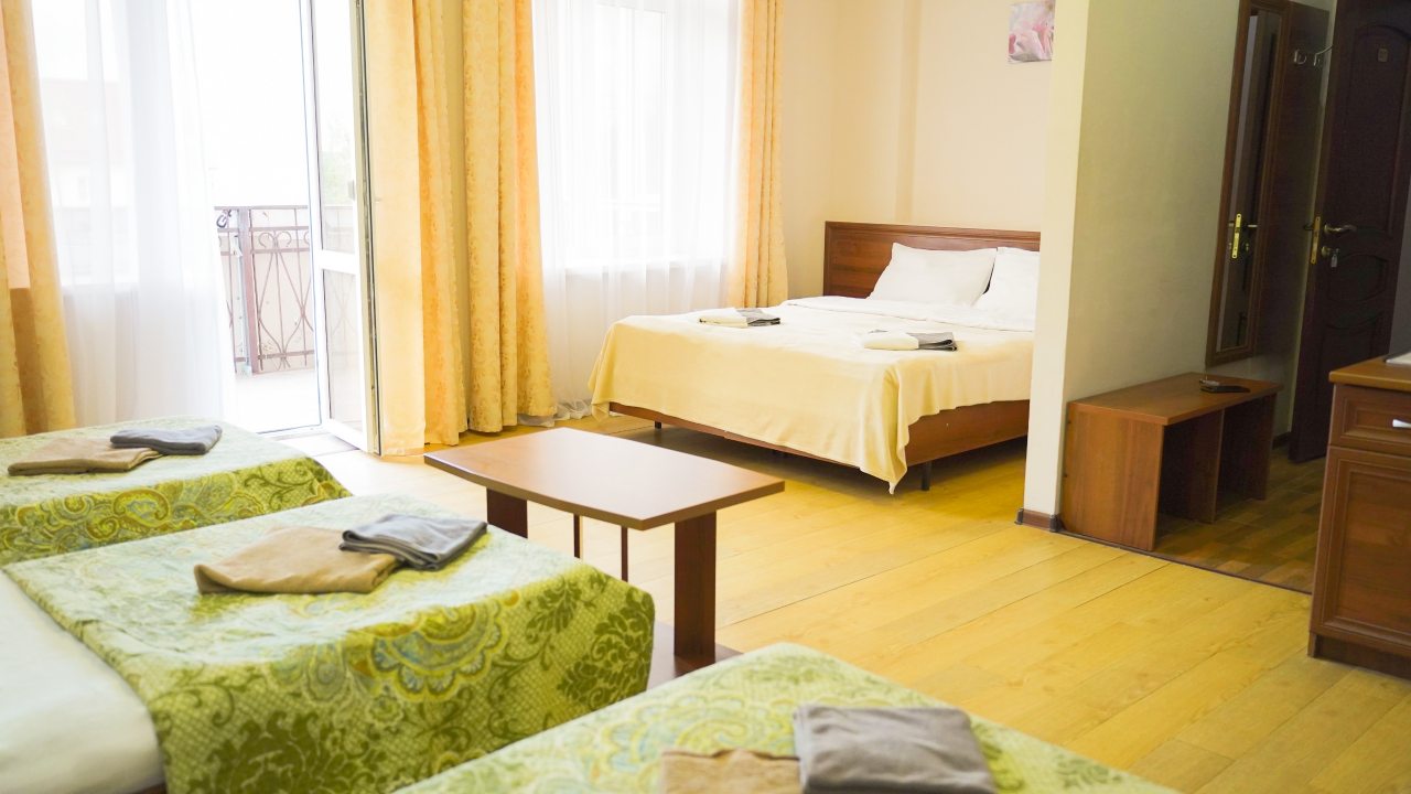 Номерной фонд представлен номерами от двухместных до пятиместных, оснащенных удобной мебелью, техникой и прочими удобствами. В распоряжении гостей также бесплатный Wi-Fi, ванная комната, кондиционер.