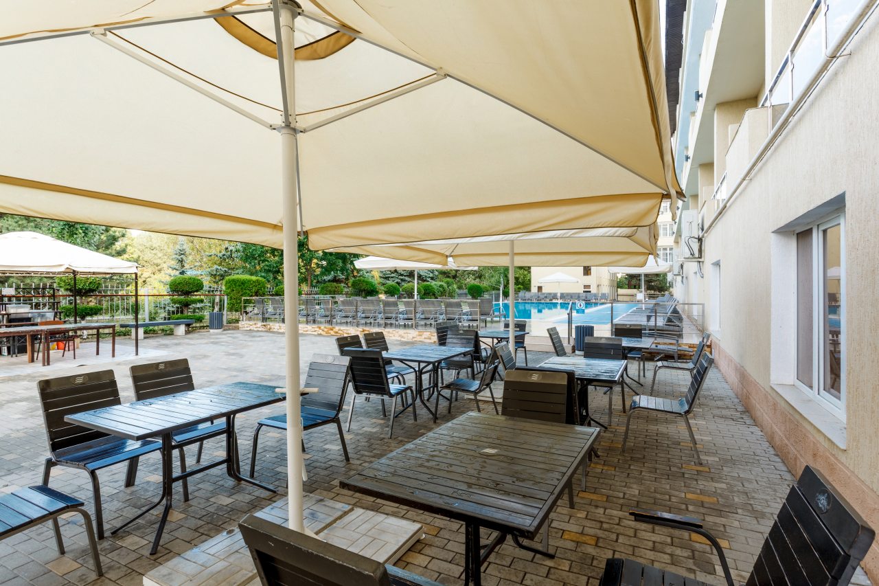 На открытой территории Гостиницы «Sunmarinn Resort All Inclusive» расположилось два просторных бассейна для взрослых и детей, каждый из которых прекрасно оформлен под потребности той или иной возрастной категории посетителей. Поблизости находится зона отдыха с удобными шезлонгами и теневыми навесами, которые помогут спрятаться о палящего солнца.