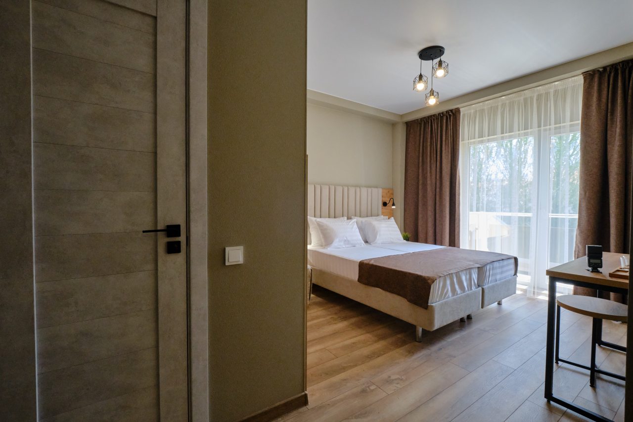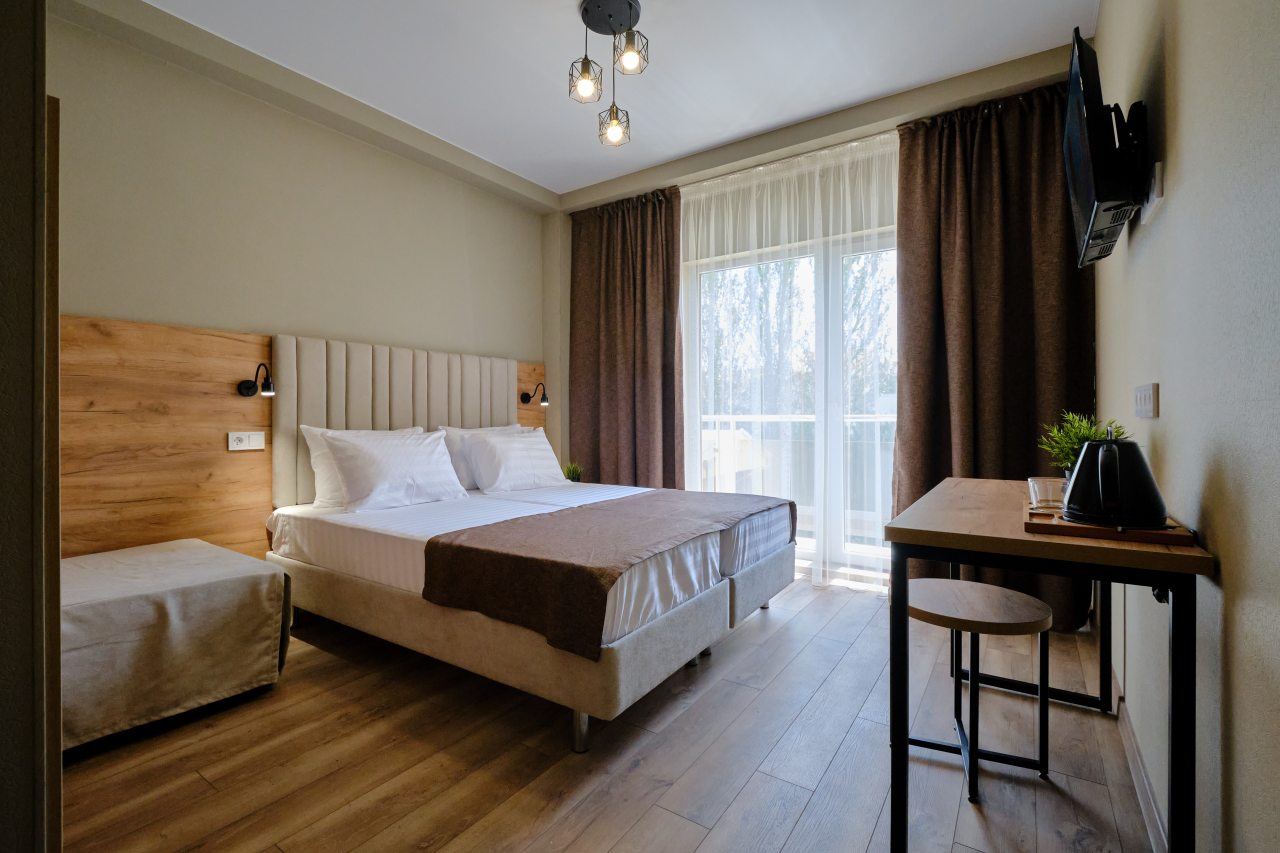 Для размещения предлагаются стильные и продуманные номера, которые подойдут для семей или компаний друзей. Среди удобств имеются комфортабельные спальные места, ЖК-телевизор, фен, сплит-система, холодильник, Wi-Fi и собственная ванная комната.