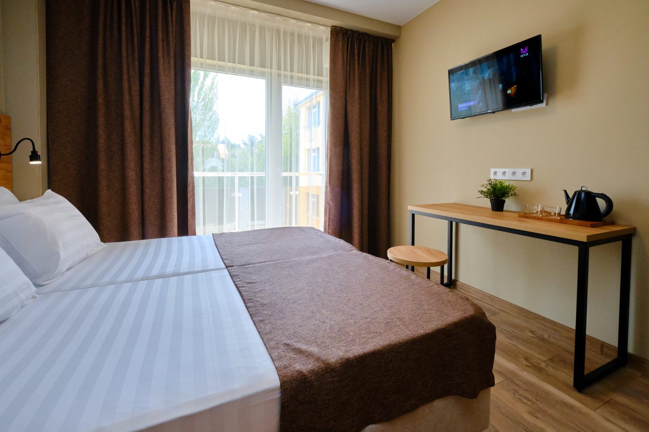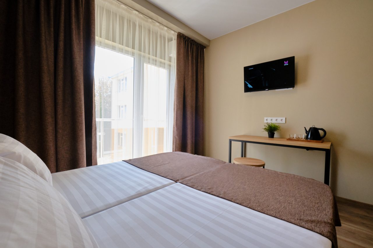 Хороший отель с питанием. Завтраки сервируют отличные, вполне достаточно для утреннего заряда. Тут же можно и ужин, обед брать. Или уже в городе выбрать общепит. Номер чистый, аккуратный, с полноценной уборкой. Санузел свой. Приняли радушно. Все вопросы решались безотлагательно. Пляж недалеко.