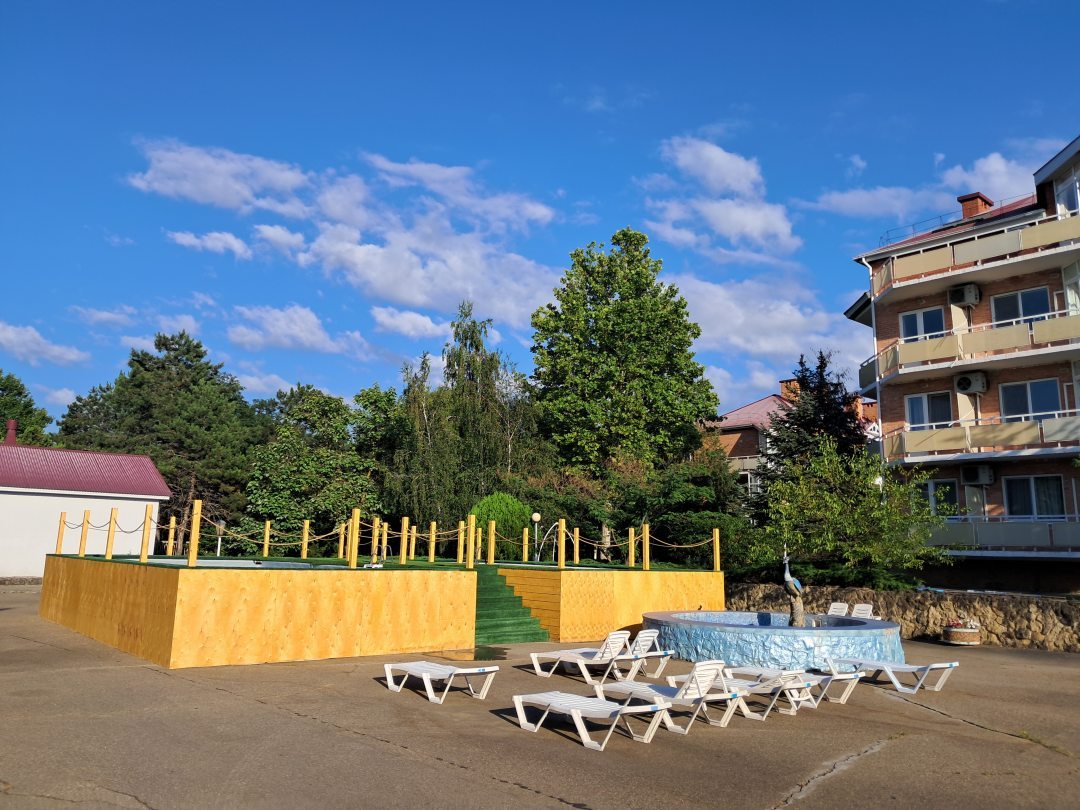Уютный пансионат, немноголюдно, отличное место для спокойного отдыха. На территории много зелени, тропинок, беседок и лавочек-качелей, два бассейна. В номере чисто, новая мебель, матрасы, белоснежное белье и полотенце. Очень доброжелательный персонал и вкусное питание. Пляж чистый и с морей тоже повезло, тёплое и прозрачное. От номера до пляжа 3 минуты ходьбы. Отдыхаем здесь уже 3-й раз и обязательно вернемся.
