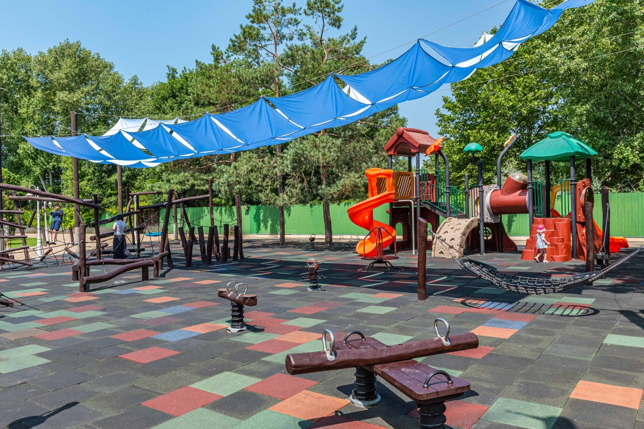На территории отеля гостей ожидает множество активных развлечений. На игровой террасе расположены бильярдные и теннисные столы, а также аэрохоккей для парных игр. Организована площадка для командных соревнований по мини-футболу и волейболу. Для спокойного времяпрепровождения предлагается разнообразие настольных игр. Также имеется тренажерный зал для тех, кто заботится о поддержании своей физической формы. В фитнес- и танцевальном залах по расписанию проводятся занятия по йоге, футболу и разминке. Собственный песчаный пляж расположен в 0,5 километрах от комплекса. На побережье имеются лежаки, навесы и зонты для удобства отдыхающих. Гостям доступны несколько открытых бассейнов и водные горки. Для детей создана игровая площадка с качелями и горками, чтобы маленькие гости не испытывали скуку, пока их родители наслаждаются отдыхом. Кроме того, предусмотрена игровая комната, где можно рисовать, заниматься поделками и весело проводить время с ровесниками. Развлекательная команда обеспечит интересное времяпрепровождение как для юных посетителей, так и для их родителей. В медицинском учреждении предлагают широкий спектр оздоровительных услуг, включая физиотерапевтические, гидротерапевтические методики, сеансы в спелеокамере, фитосауну и другие. СПА-центр располагает финской сауной, хамамом, аромасауной, зоной отдыха «Аквазона», уникальной грязевой баней «Расул» и крытым бассейном. Расстояние до железнодорожного вокзала — 3,8 км, до аэропорта — 9,7 км.