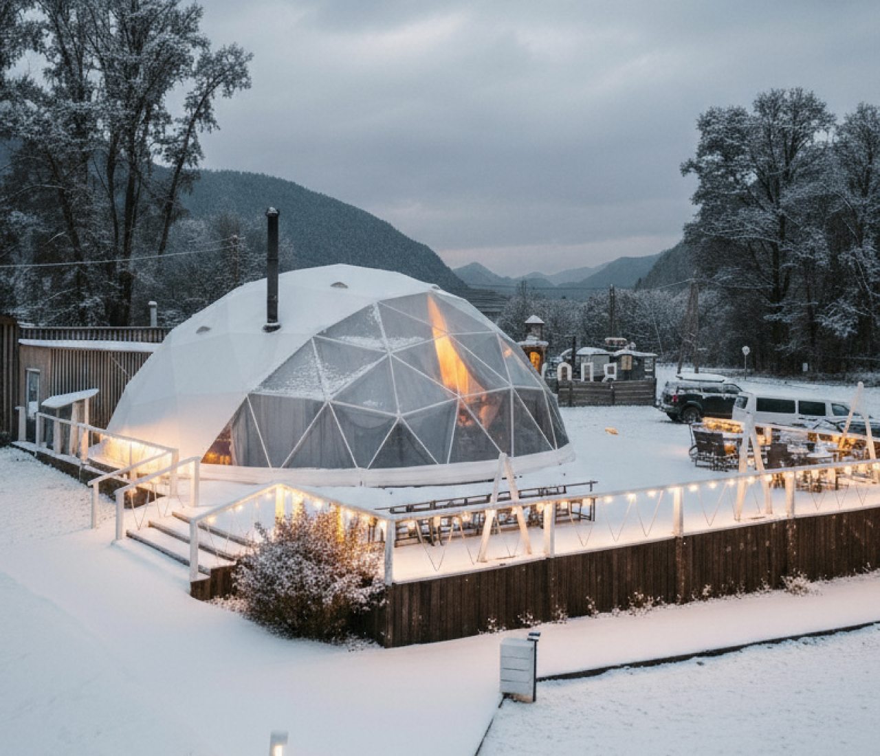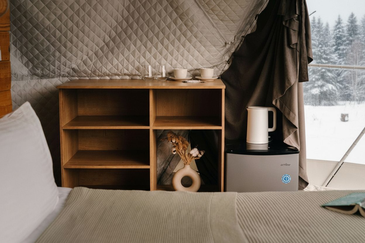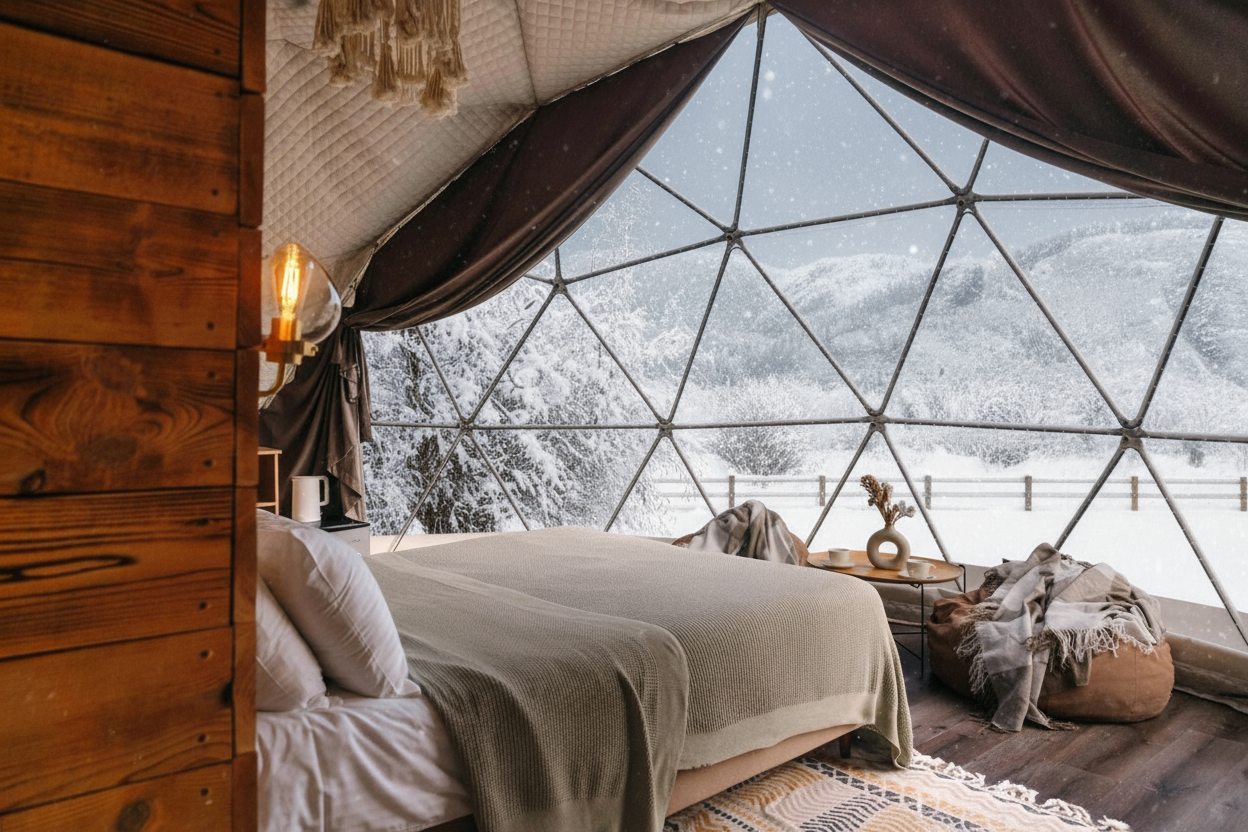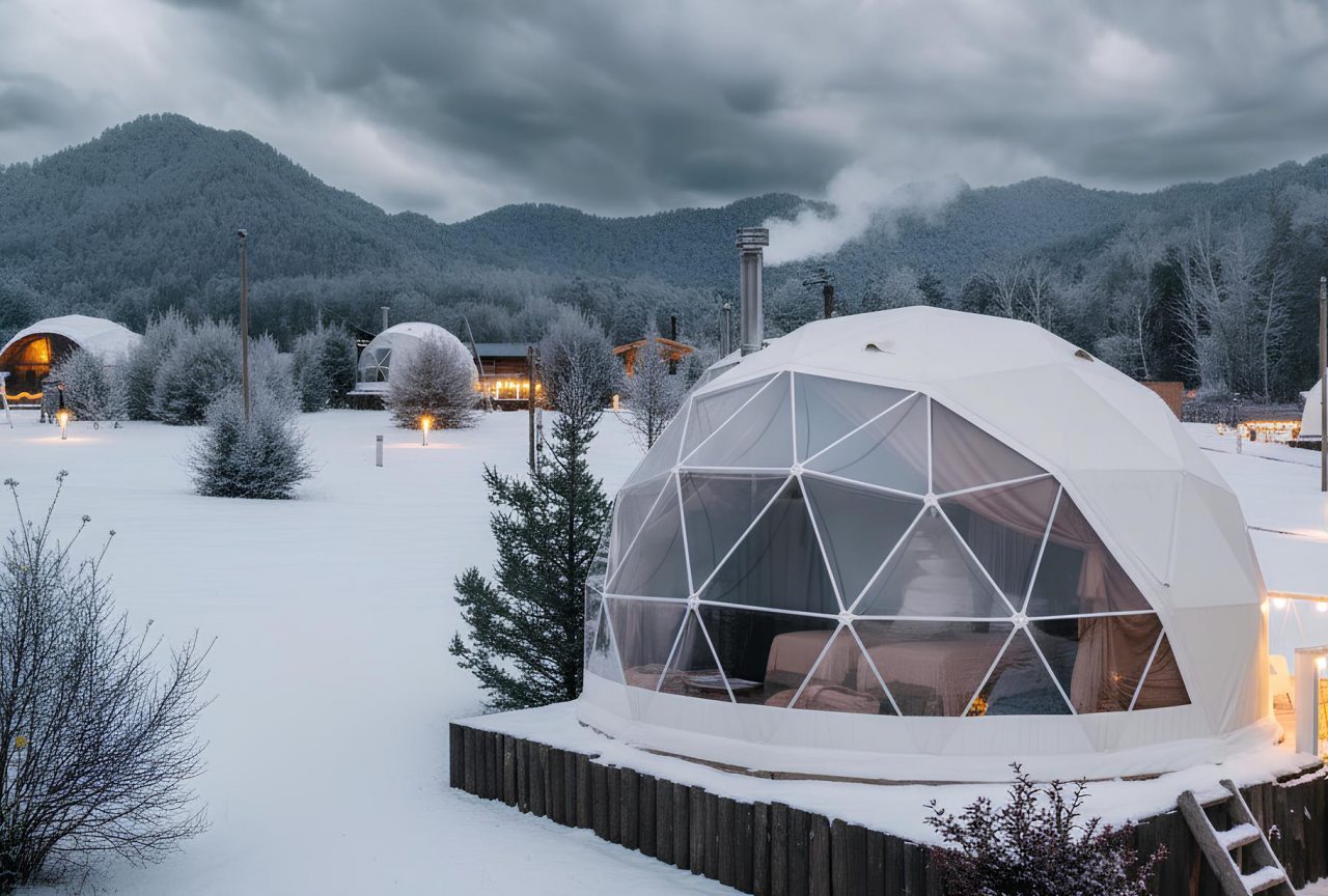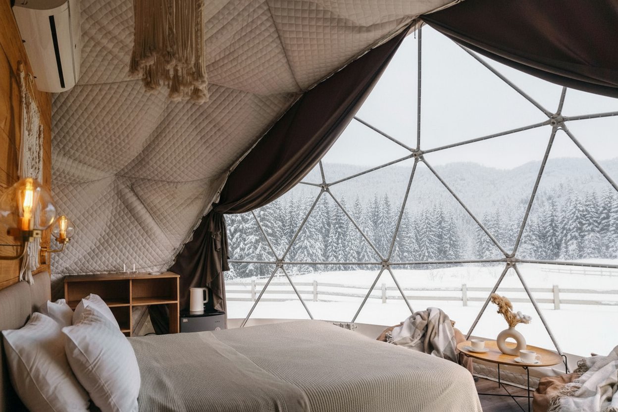Номера этого необычного отеля представляют собой купола, под которыми очень тепло и уютно. В них есть все необходимые удобства для комфортного отдыха: климат контроль, удобная мебель, собственный санузел, бесплатный Wi-Fi.