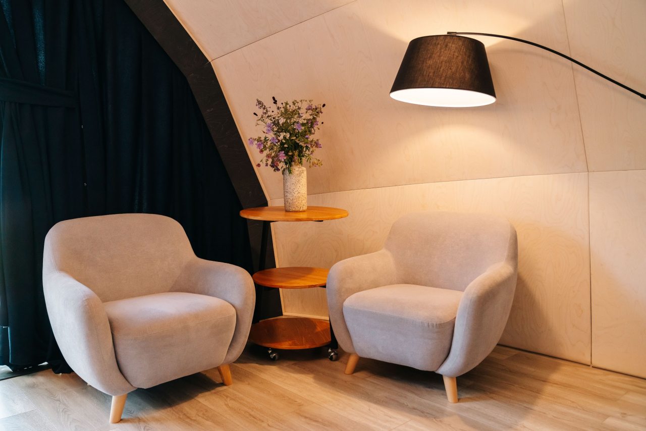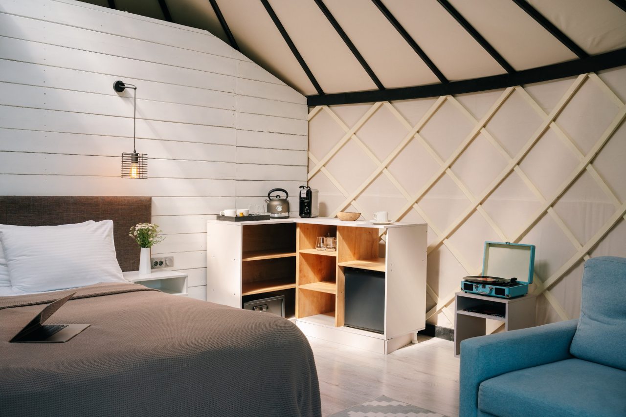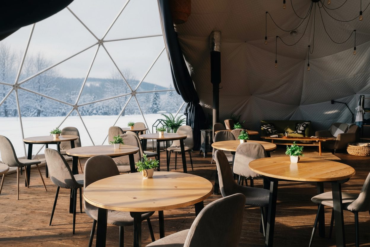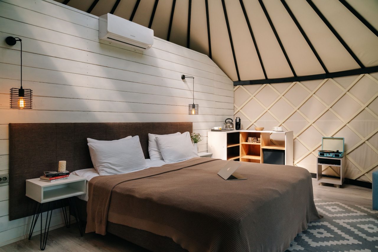 Номера этого необычного отеля представляют собой купола, под которыми очень тепло и уютно. В них есть все необходимые удобства для комфортного отдыха: климат контроль, удобная мебель, собственный санузел, бесплатный Wi-Fi.