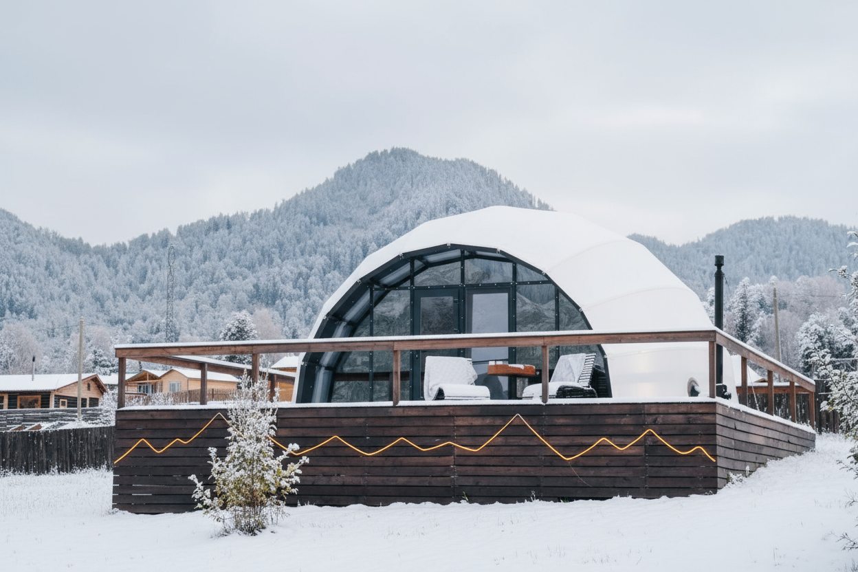 Мы отдыхали на Алтае в одном из таких домиков полусфер. Остались довольны все. Этот отельный комплекс расположен на берегу реки Катунь. Природа и горизонты здесь конечно незабываемые, очень живописные пейзажи. Прям идеальное место для заряда энергией! В домиках оптимальные условия, все продумано для комфорта. По коммуникациям вопросов нет – напряжение хватало, вода была постоянно.