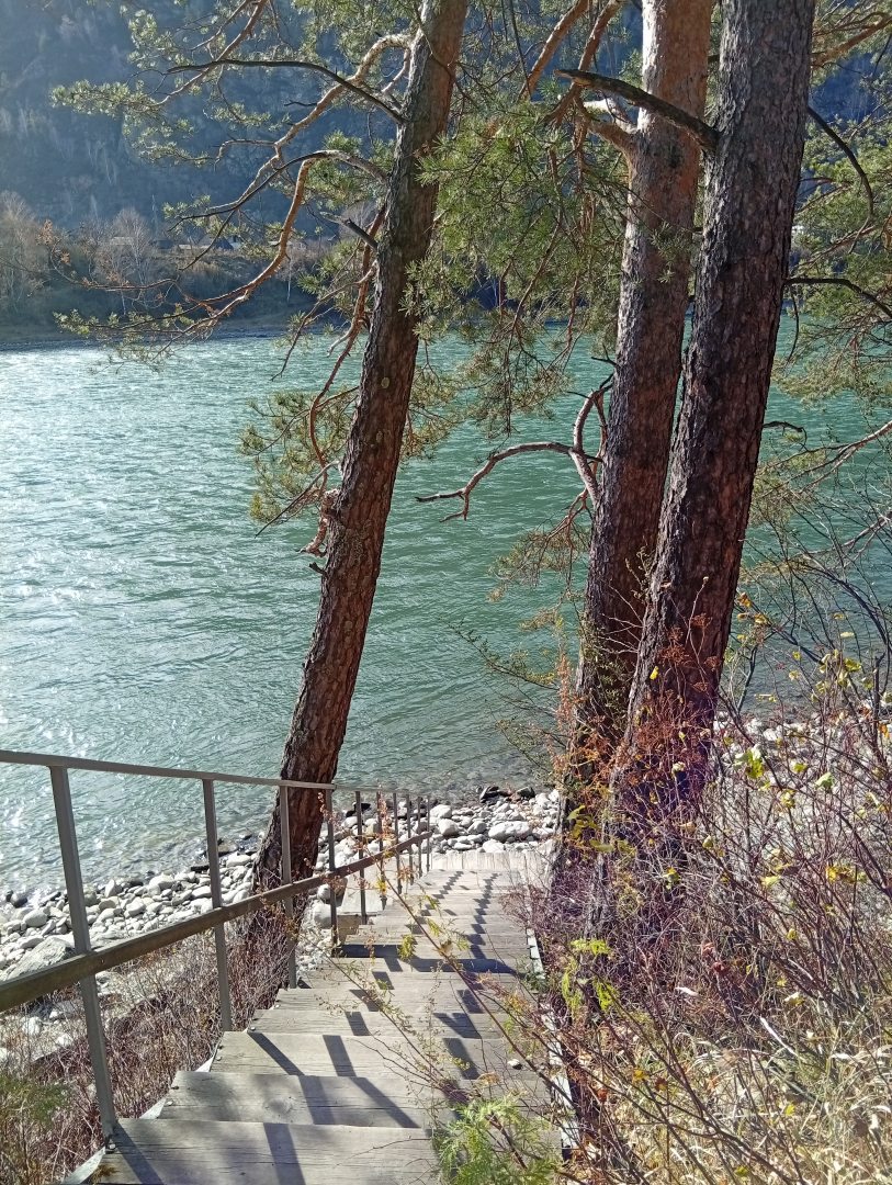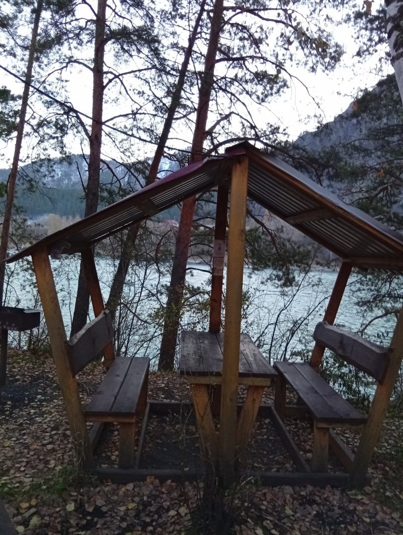 Катунь проходит около отеля, более того есть беседки около реки. Беседки на возвышенности, немного закрыт вид деревьями, но с учётом жары это огромное спасение.