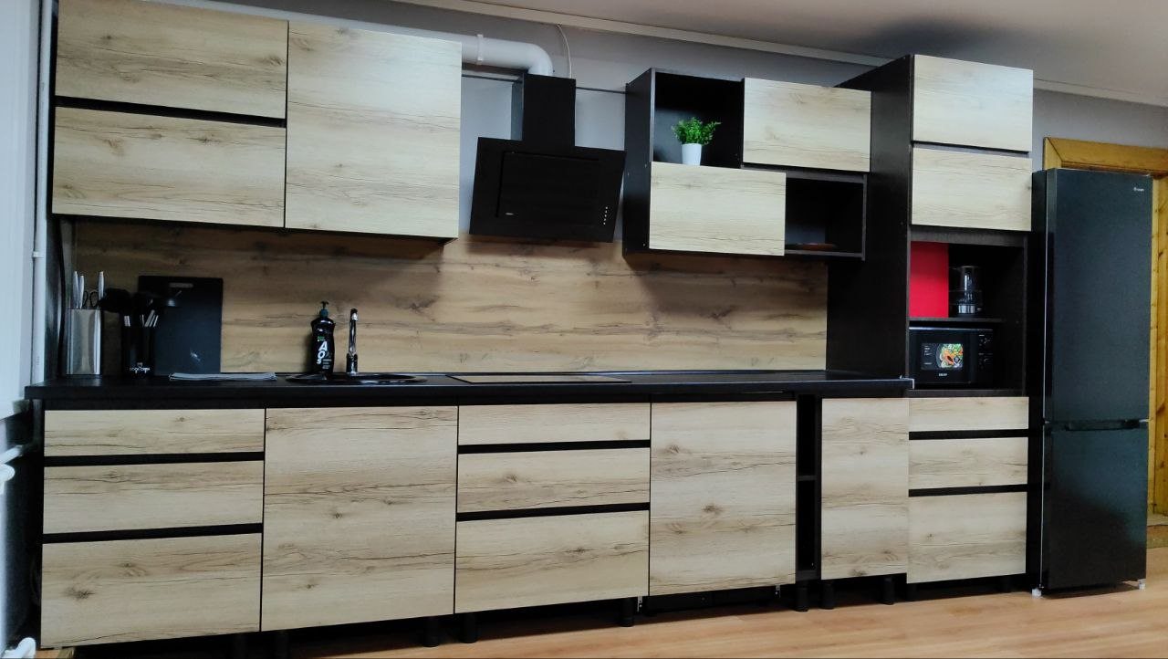 Из недостатков: отсутствует какое-либо питание. Только готовить самому из своих продуктов. Однако кухня продуманная, плита индукционная, холодильник, набор приспособлений для готовки.