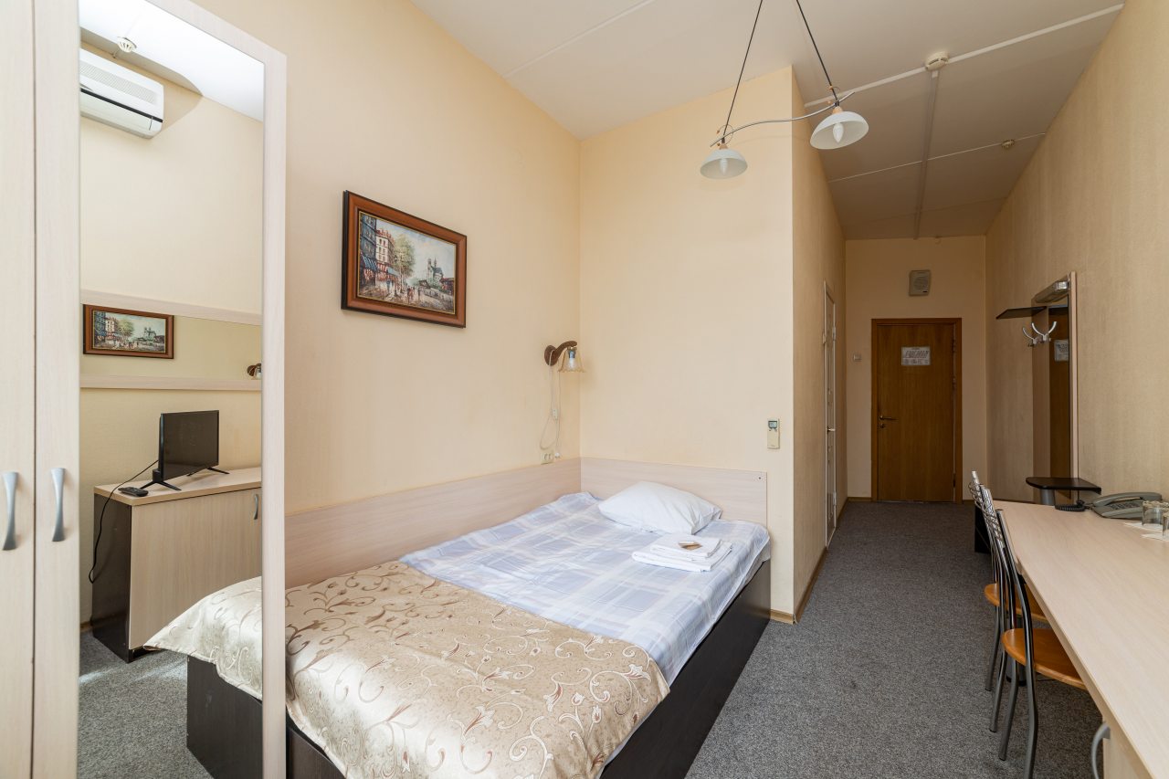 В Архангельск приезжал в командировку, на работе заранее бронировали мне одноместный номер в гостинице. Комнату подготовили хорошо к заезду, в ней было чисто и проветрено. В номере свой отдельный санузел и шкаф-купе. Также есть небольшой холодильник, тумбочка, рабочий стол и стул. Наличие телевизора предусмотрено. Работает здесь и интернет. На территории гостиницы имеется свой конференц-зал.