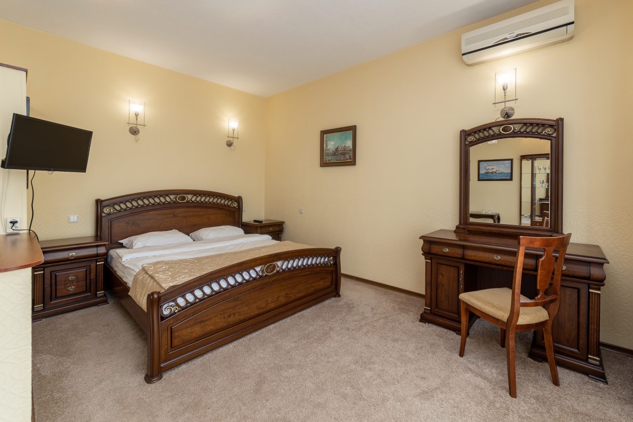 Для проживания подготовлены уютные номера различных категорий, обустроенные комфортабельной мебелью, собственной ванной комнатой, телевизором, кондиционером, сейфом, холодильником. Предоставляются полотенца, халат, тапочки, средства гигиены.