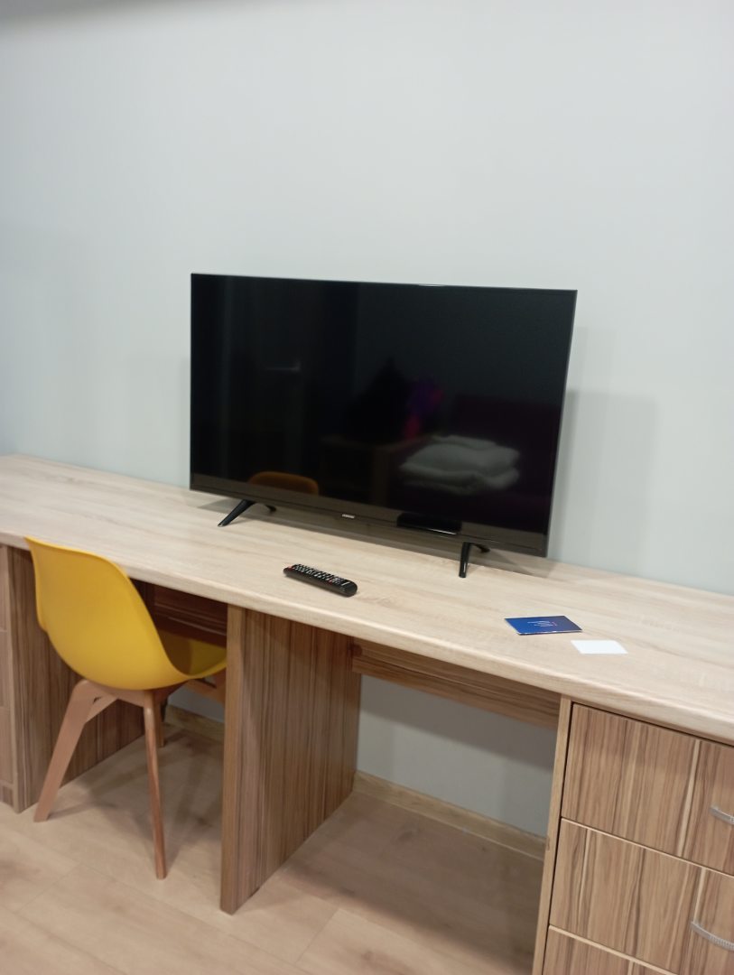 В номере есть все необходимое для проживания. Холодильник, микроволновка, чайник, столовые приборы. Чай, сахар полотенце обновлялись каждый день. Можно оставить вещи по необходимости. Историческая часть города в шаговой доступности. Есть столовая, мы не питались.