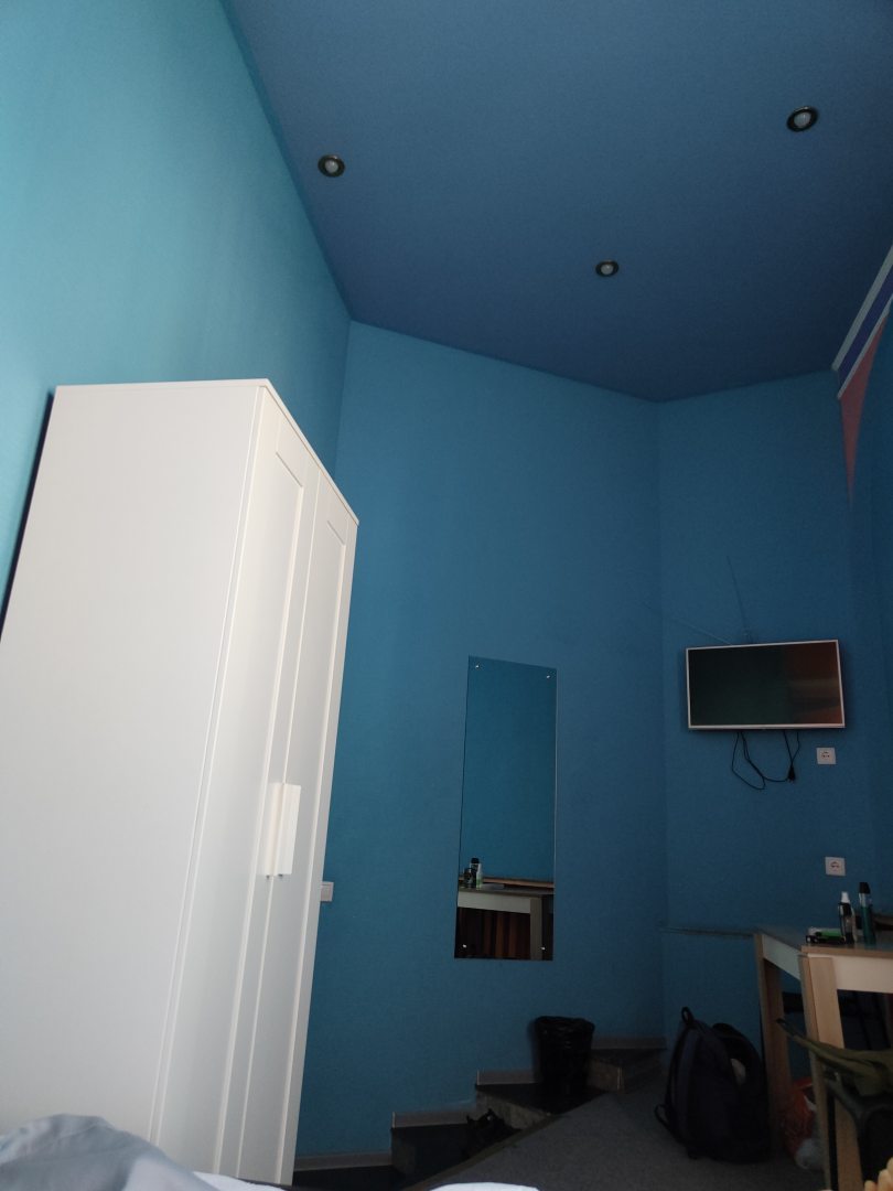 Номер расположен на 12 этаже, лифт едет до 10 - далее пешком ( следует учесть, кто с чемоданом ), на этаже общая кухня с кулером, микроволновкой, холодильником и боллером с кипятком. Чай кофе снеки можно приобрести у администратора. Белье не новое, но чистое. Персонал отзывчивый и готов к максимальному решению вопросов. Из плюсов: расположение в центре, 10 мин неспешной ходьбы до ключевых достопримечательностей и набережной, большая парковка, птичий гомон по утрам в приоткрытое окно - лучший будильник)