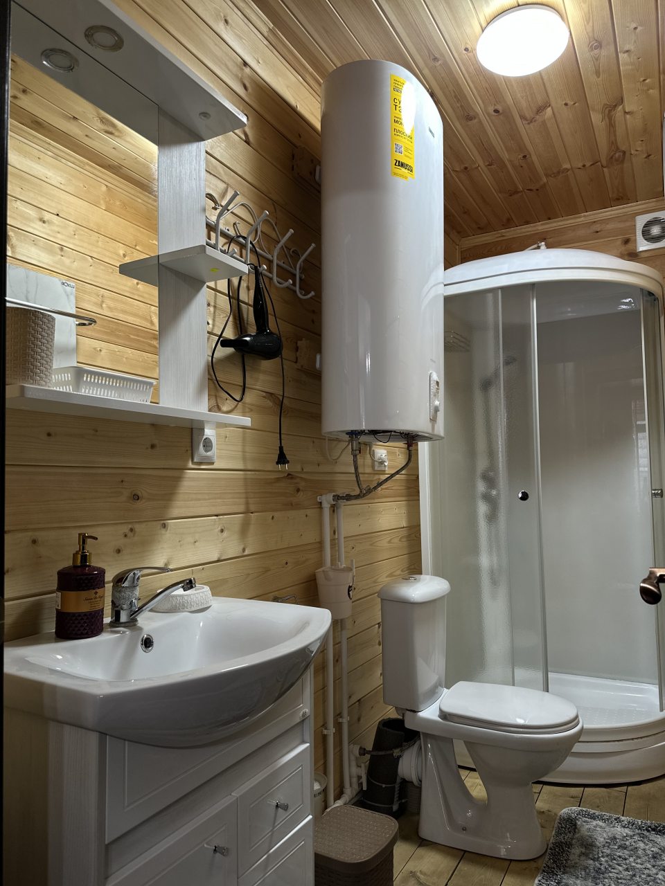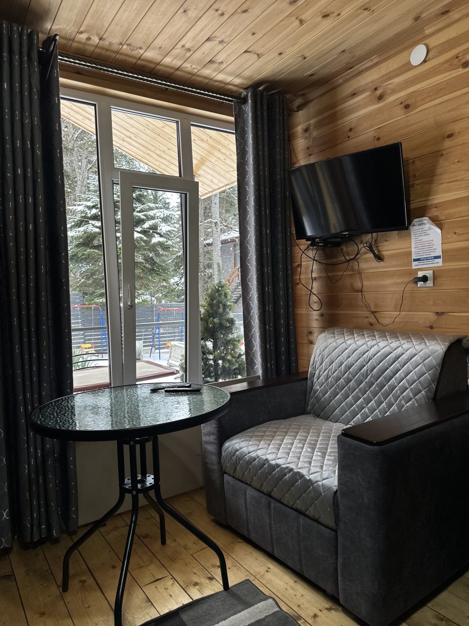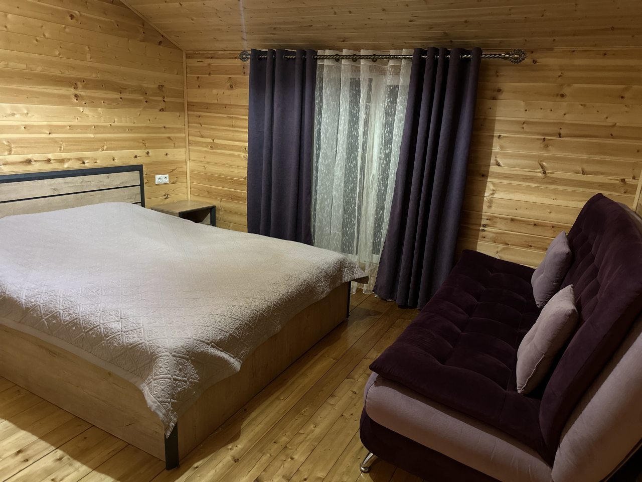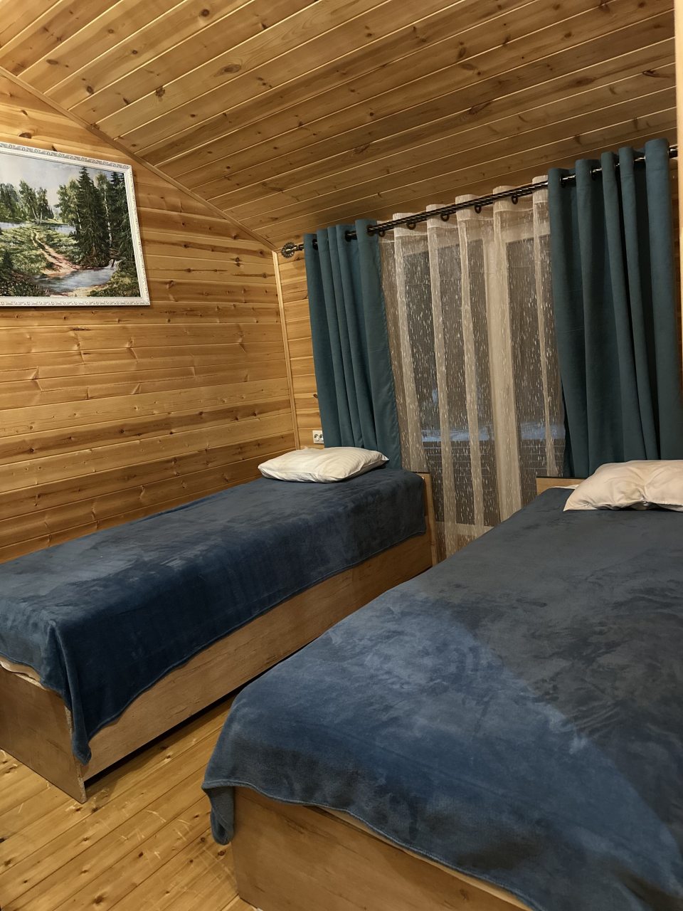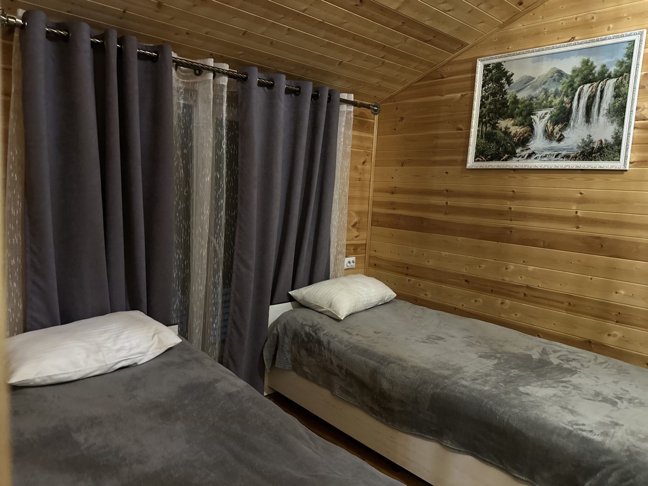 Для размещения гостей подготовлены уютные коттеджи, оформленные в современном стиле с использованием натуральных материалов. К услугам гостей: удобные спальные места, мягкое кресло и диван, телевизор. В санузле установлена душевая кабинка и необходимая сантехника, имеется фен и средства гигиены.