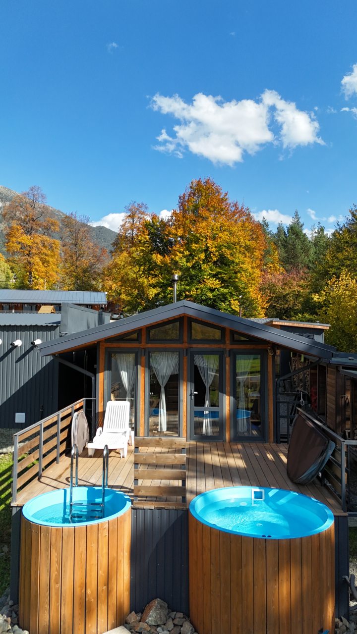 Просторная и благоустроенная территория радует глаз чистотой и ухоженностью. Для любителей шашлыка предусмотрена отдельная мангальная площадка с раковиной, а также две крытые беседки. Домики содержатся в идеальном порядке, кровати комфортные, и пространства вполне достаточно для размещения шести взрослых. Отдельно стоит отметить отличную баню, которую мы арендовали на два часа. Там было безупречно чисто, есть джакузи с теплой водой и прохладная купель.